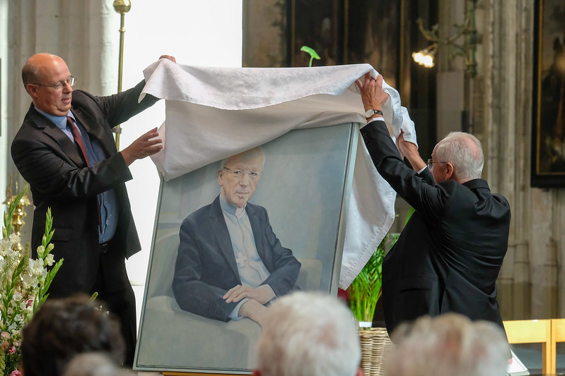 Son portrait, peint par Jan Vanriet, a ensuite été officiellement dévoilé et l’artiste Stéphane Terlinden a offert au cardinal, en guise de cadeau d’adieu, une œuvre en céramique sur sa vie. Le cardinal Jozef De Kesel a chaleureusement remercié sa famille et tous les collaborateurs qui l’ont assisté au cours de sa longue carrière.