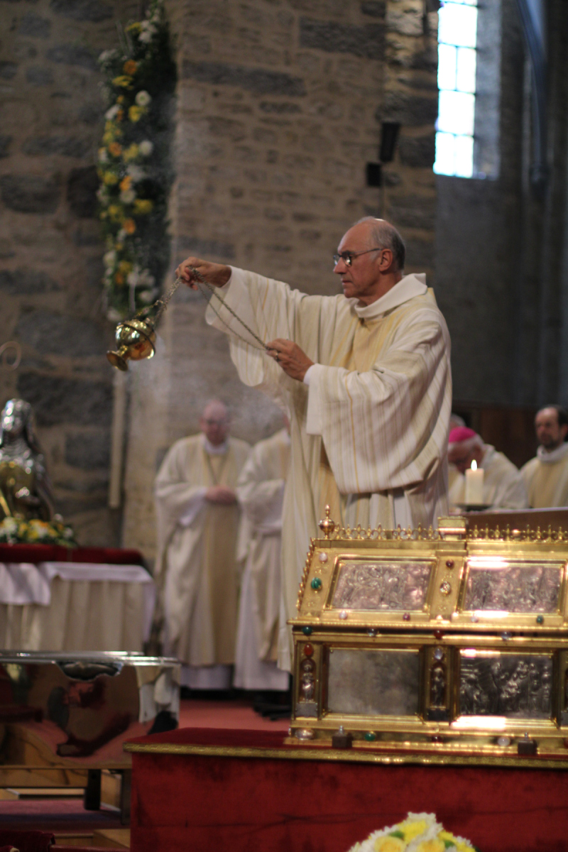 A l’issue de la célébration, de nombreux applaudissements se sont élevés depuis la collégiale Sainte-Gertrude quand Mgr Terlinden a chaleureusement remercié l’assemblée présente et tous ceux qui ont préparé cette belle célébration. A l’attention de Mgr Hudsyn, il a souligné : « Merci Mgr Hudsyn. Sans compter il s’est donné et il se donne ici pour cette église du Brabant wallon » Ensuite, le chanoine Eric Mattheeuws a ainsi félicité le nouvel archevêque : « Félicitation Mgr et bienvenue chez vous » Autre temps fort de la célébration, l’encensement de la châsse, contenant les reliques de Sainte Gertrude. Elle a ensuite été hissée sur le char, par le corps des pompiers. Ensuite, l’archevêque s’est tenu au pied des marches du chœur occidental, saluant et échangeant avec les nombreux fidèles, ravis de discuter avec leur nouvel archevêque.