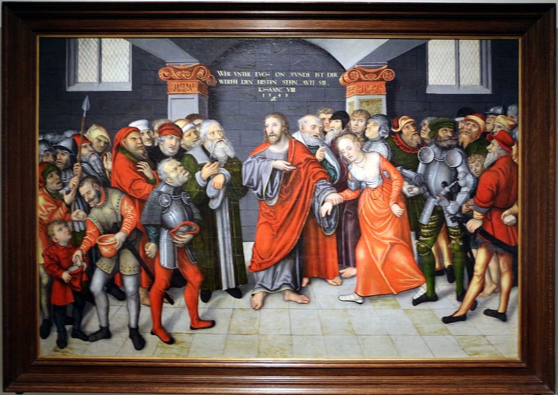 La femme prise en faute connait la culpabilité, la honte et la peur de la mort. Jésus l’aide à reconnaitre le mal qui a été fait tout en la libérant de la culpabilité, en lui offrant le pardon.