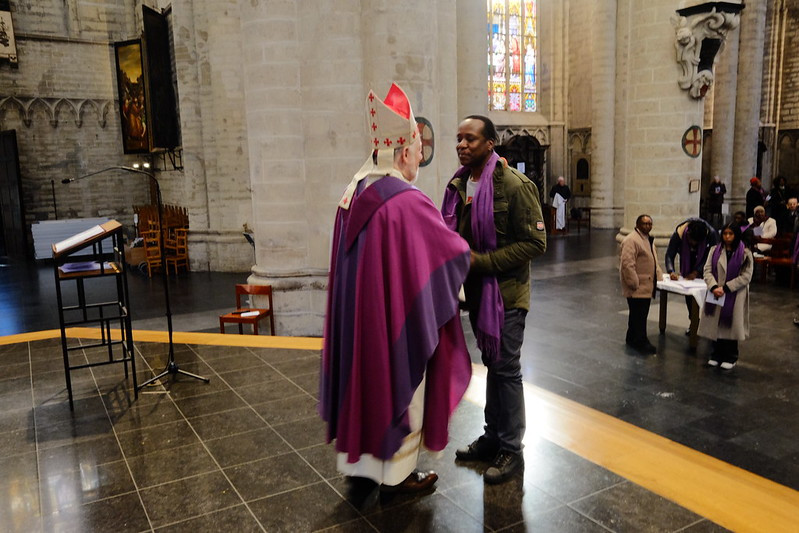 Lors de son homélie, Mgr Kockerols nous fait part des lettres qui lui ont été adressées par les catéchumènes, de comment elles l’ont touché. Cette année particulièrement, Mgr a été frappé par trois aspects. Premièrement, beaucoup de futurs baptisés lui ont écrit quels passages de la Parole de Dieu les ont touchés, comment l’Évangile les a touchés.