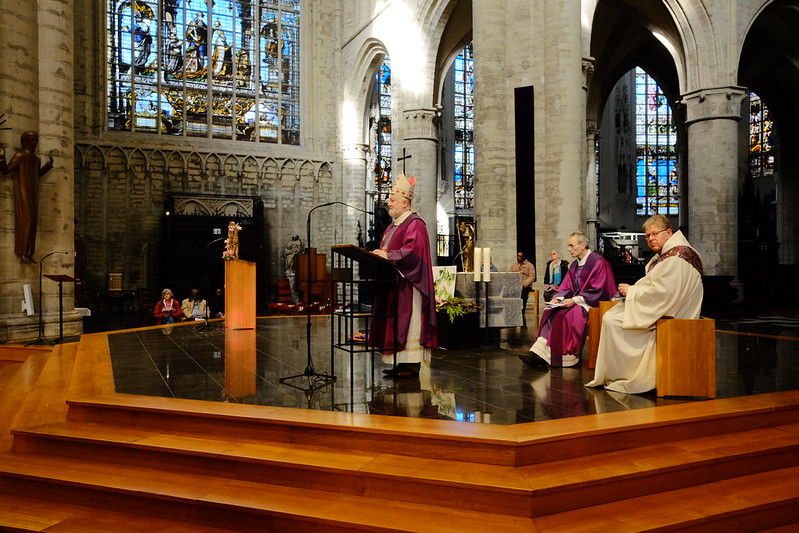 La cathédrale se remplit de monde à l’occasion de l’Appel décisif où les catéchumènes répondront à l’appel du Christ pour être ensuite accueillis par Mgr Kockerols, évêque auxiliaire pour Bruxelles, au sein de l’Église.