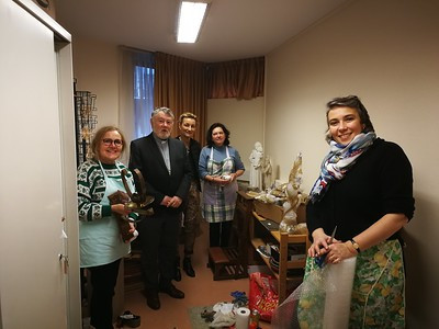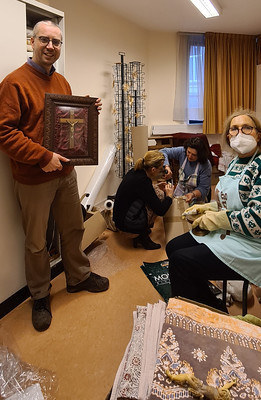 Ce 16 février, une dynamique équipe de quatre femmes, Armelle Flett, Aude de Maleyssie et Patricia Ziegler sous la houlette d’Anne-Marie Berlier, s’était réunie au vicariat pour procéder à l’emballage d’objets religieux concédés par le vicariat ; l’objectif étant de savoir les intégrer au prochain container en partance pour Haïti.