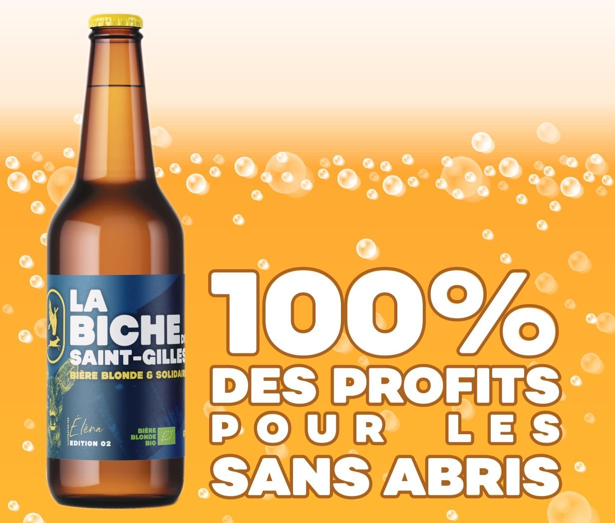 En dégustant une Biche de Saint-Gilles, les consommateurs participent à un projet solidaire, puisque 100% des bénéfices sont reversés à l’Entraide de Saint-Gilles qui accueille chaque matin une centaine de personnes sans-abris autour d’un café.