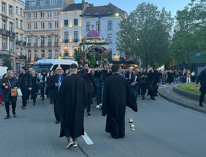 Les célébrations de la Pâque orthodoxe ont commencé la veille au soir (NDLR vendredi 3 mai) qui était le Vendredi saint : « Ce jour-là, nous marchons dans une somptueuse procession avec des bougies, des chants et l’épistaphios pour bénir les rues autour de l’église ». L’épitaphios est un vêtement richement décoré représentant le Christ mort, il représente le tombeau du Christ quittant l’église. « Hier, j’ai participé à la procession de notre église à Molenbeek-Saint-Jean. Même si la plupart des habitants ne sont pas orthodoxes, il n’y a jamais de problème. Notre foi et nos traditions y sont respectées.
