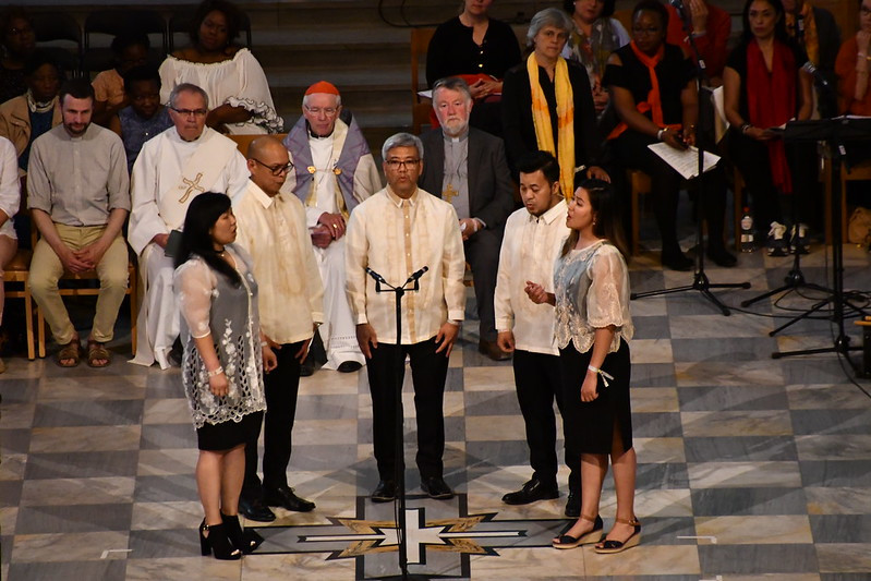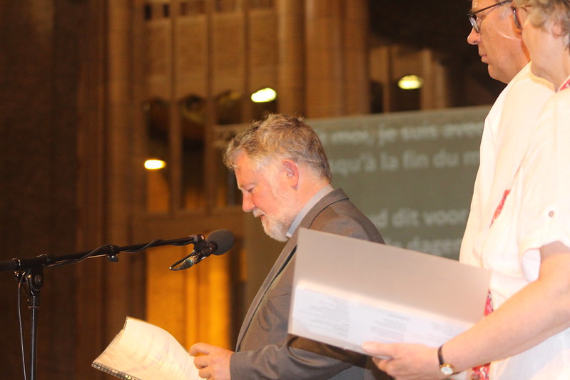 Nous avons écouté ensemble la fin de l’évangile selon saint Matthieu (Mt.28,16-20). La dernière phrase – « Et moi, je suis avec vous tous les jours jusqu’à la fin du monde. » – a été répétée en huit langues pour que tout le monde puisse se l’approprier. Il ne nous quitte pas !