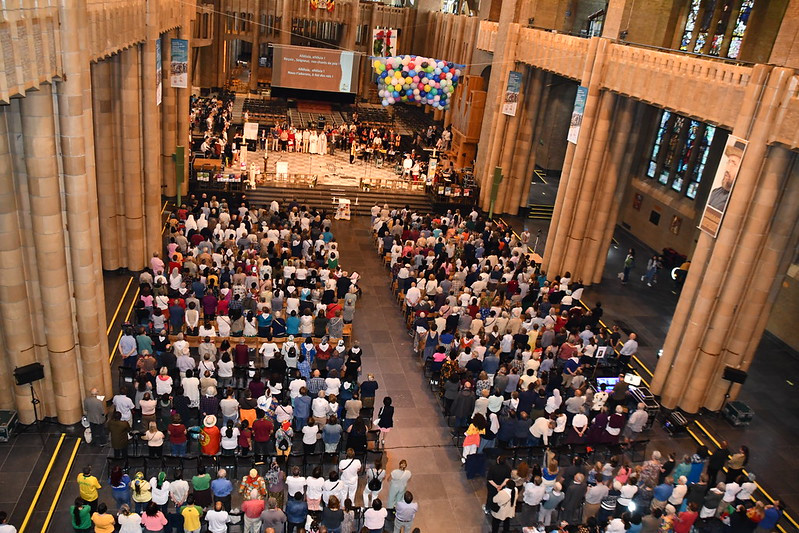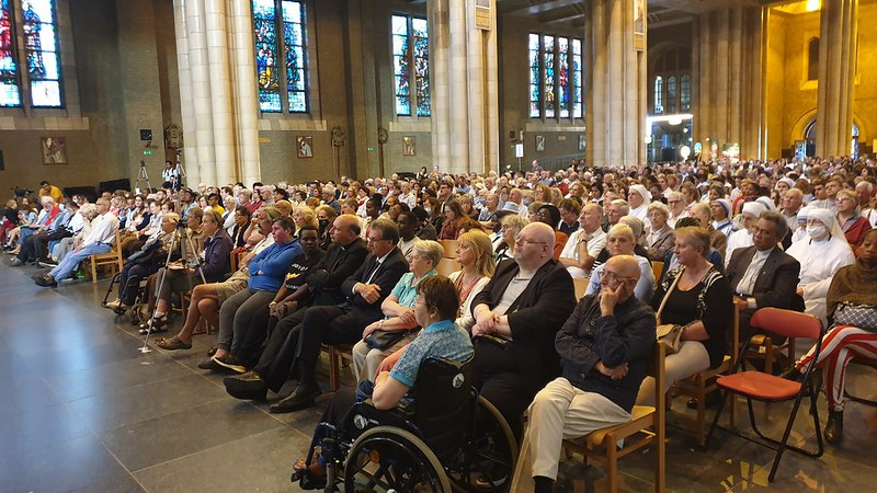 D’innombrables personnes étaient venues à pied de partout à Koekelberg, marchant littéralement ensemble (syn-odos). Après un accueil musical avec une boisson et une collation dans le parc Elisabeth, le flot des fidèles est monté vers la basilique.