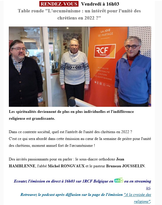 La semaine se poursuit par la prière du matin sur RCF Bruxelles 107.6FM et par la méditation quotidienne via notre page Facebook ou Instagram : Plus de renseignements, via cet article.