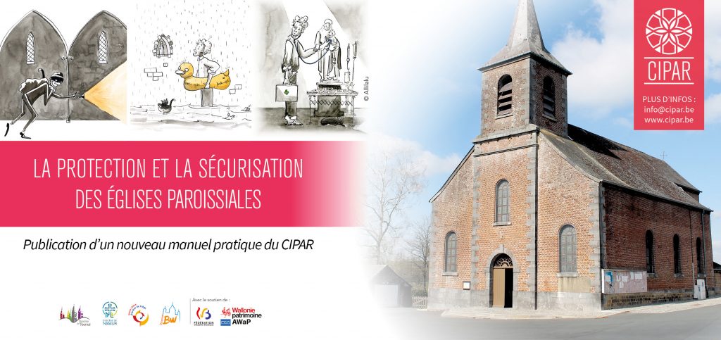 Le Centre Interdiocésain du Patrimoine et des Arts religieux (CIPAR) a choisi de consacrer sa cinquième brochure à la sécurité des églises paroissiales. « Depuis cinq ans que nous sommes sur le terrain, relève la responsable communication Vinciane Groessens, nous avons entendu la grande difficulté des paroisses en la matière. » Le travail fourni en 120 pages par le CIPAR repose notamment sur un questionnaire d’auto-évaluation proposé aux fabriques d’églises. Il permet de détecter les risques d’incendies (« Les supports des luminaires sont-ils parfaitement stables ? », par exemple) ou alors d’inondations. On sait que 30 églises sur les 2.500 édifices catholiques de Wallonie ont subi de graves dégâts l’été dernier, et 5 églises sont encore dans une situation compliquée.