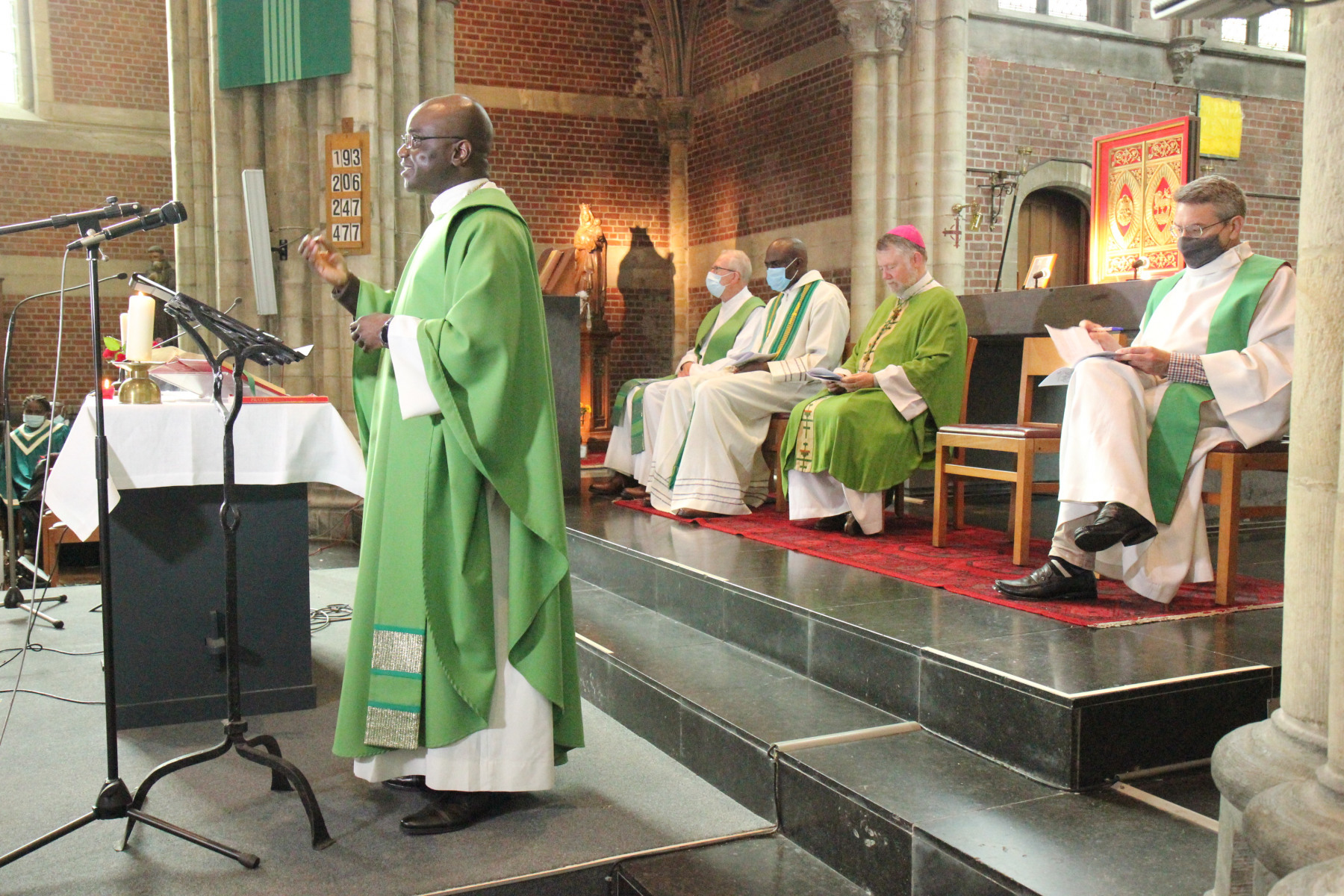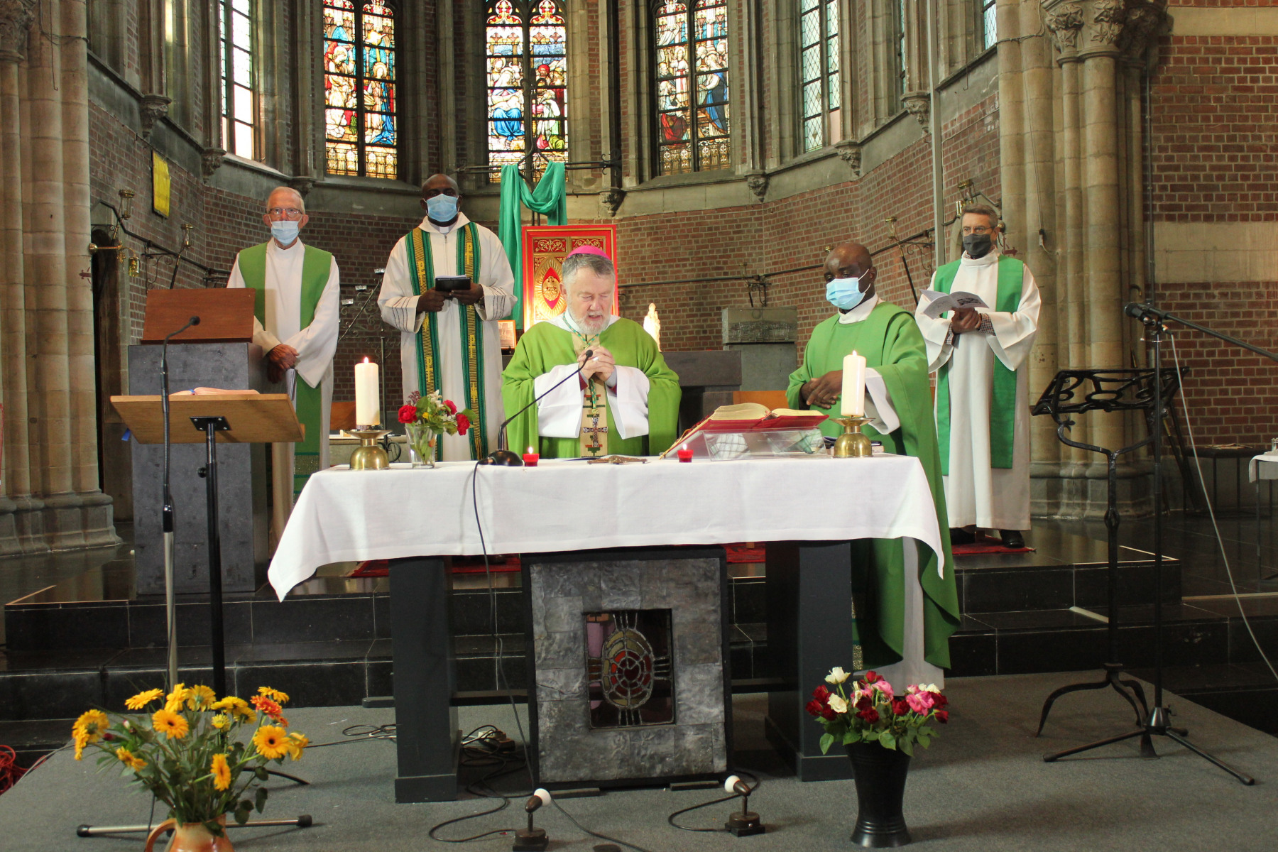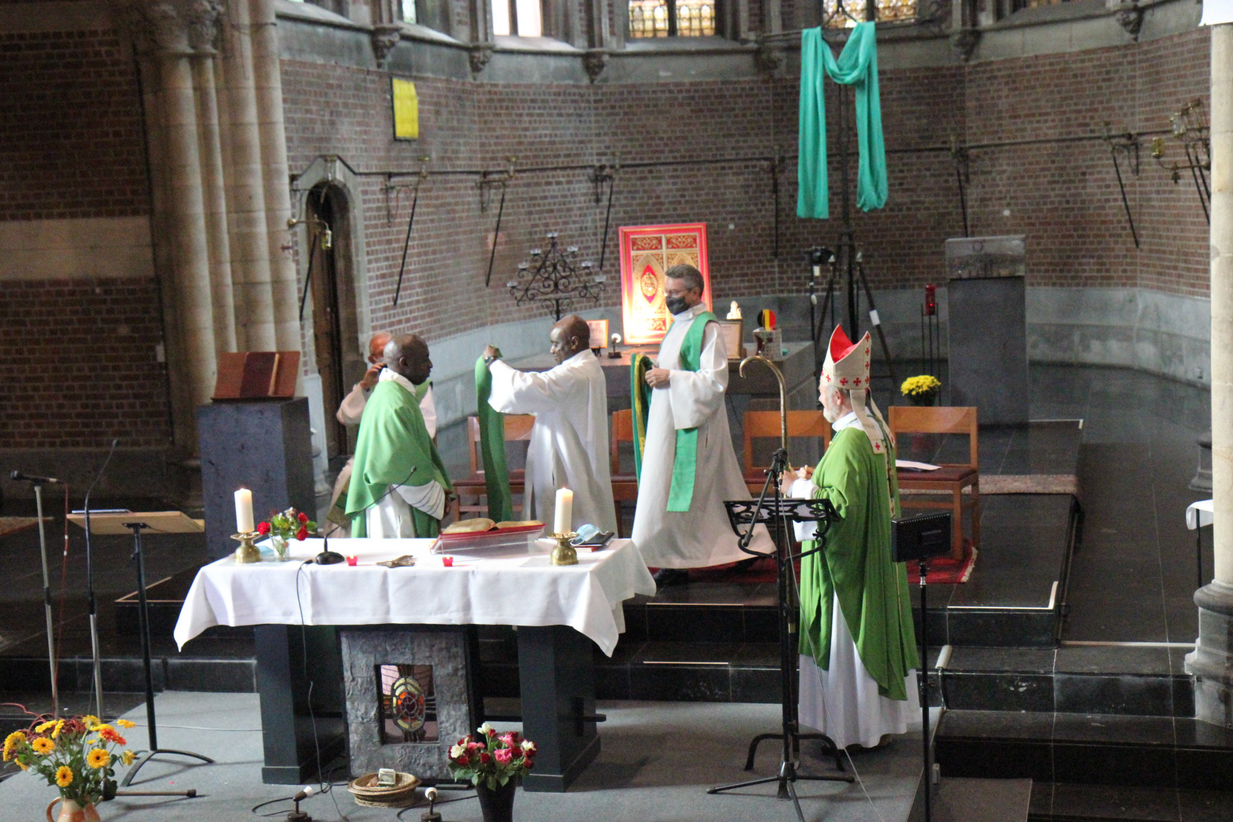 Mgr Jean Kockerols a présidé l’eucharistie en l’église du Sacré-Coeur et St-Lambert au Heysel (Unité pastorale Joseph Cardijn). Lors de son homélie, Osmond a rappelé l’importance pour les membre de sa communauté de vivre de la Parole de Dieu et aussi de s’intégrer dans la société bruxelloise.