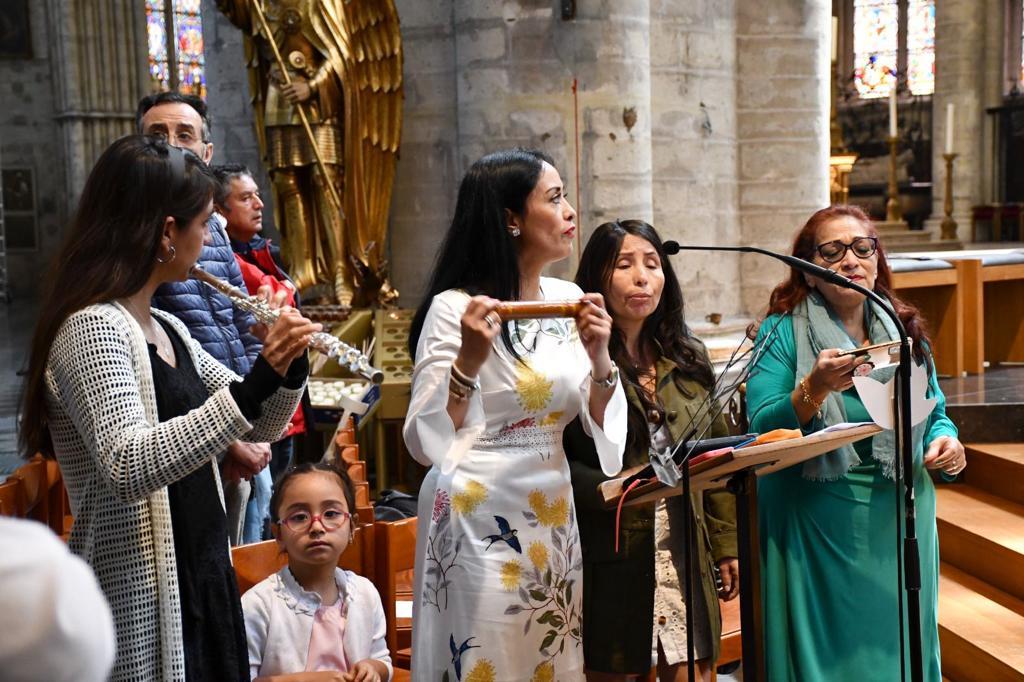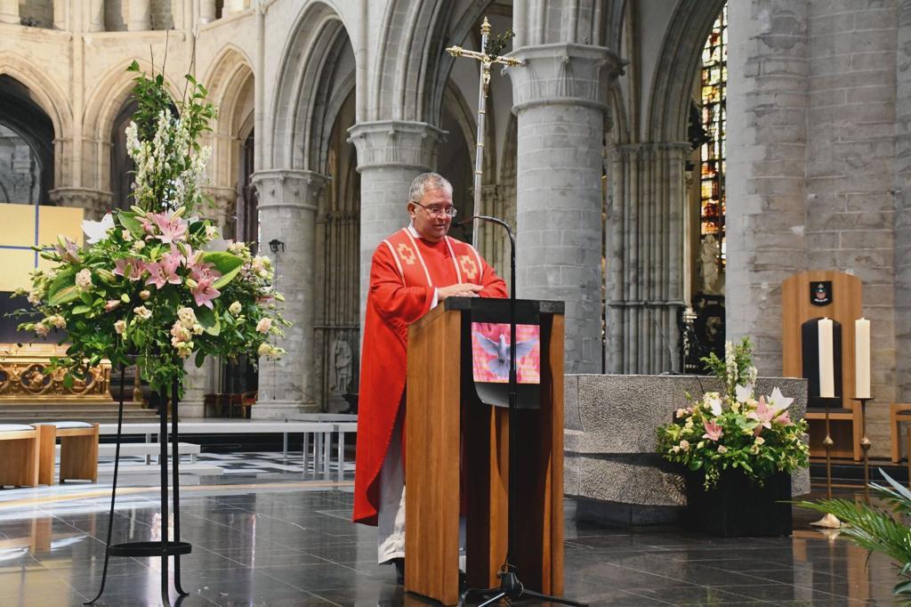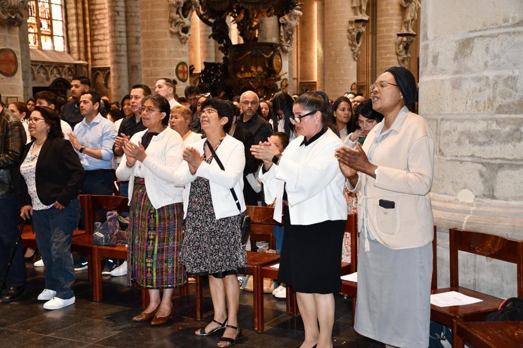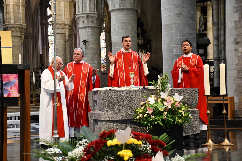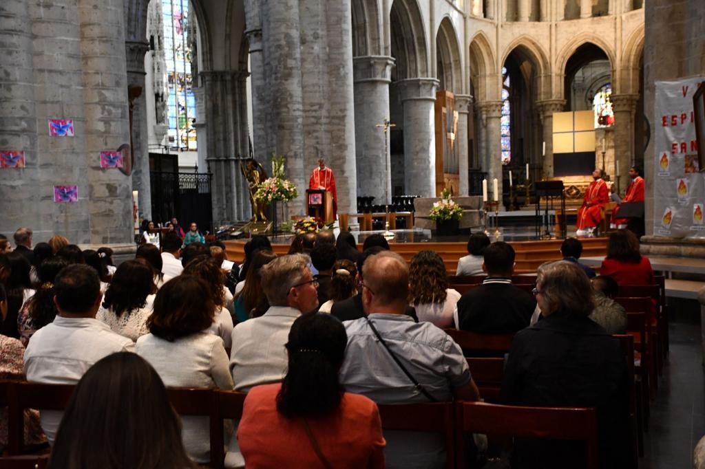 En raison du grand nombre de fidèles, la célébration a eu lieu à la cathédrale des Saints-Michel-et-Gudule. La messe a été présidée par le vicaire général de l’archidiocèse, le chanoine Luc Terlinden, le Père Oscar Escobar, coordinateur de la pastorale hispanophone de Bruxelles, ainsi que les Pères Paolo Rossano Aponte Chacón, co-responsable, et Angel Salinas, retraité, ont concélébré cette messe exceptionnelle.