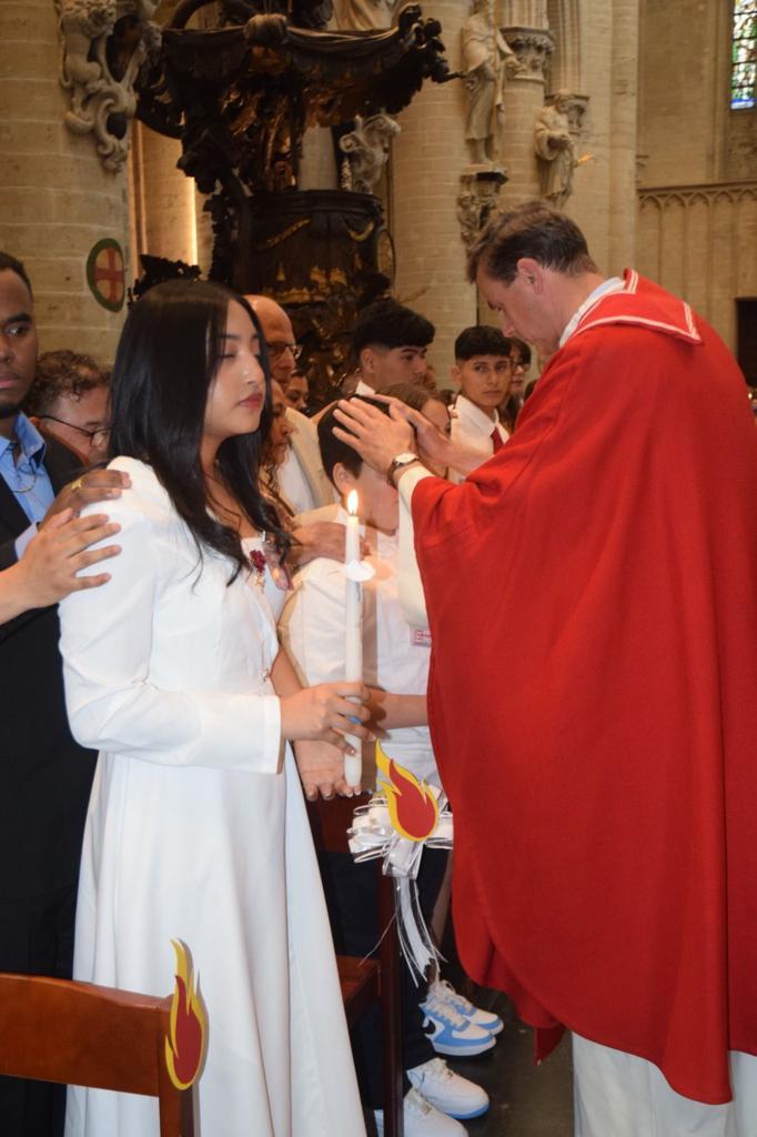 Le samedi 3 Juin les communautés hispanophones de N-D du Finistère à Bruxelles-Centre, de la Consolation à Schaerbeek et de Jésus-Travailleur à St-Gilles se sont rassemblées pour célébrer le sacrement de la confirmation. Un total de 43 jeunes, venant de ces trois communautés, ont reçu ce sacrement important de l’Église. Chaque communauté a joué un rôle actif dans l’organisation et le déroulement de la messe.