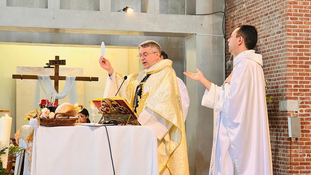 Ils étaient 34 jeunes et adultes à recevoir, en ce dimanche de la Sainte Trinité, le sacrement de la confirmations et une douzaine à communier pour la première fois, sous le regard de Notre-Dame Aparecida, patronne du Brésil.