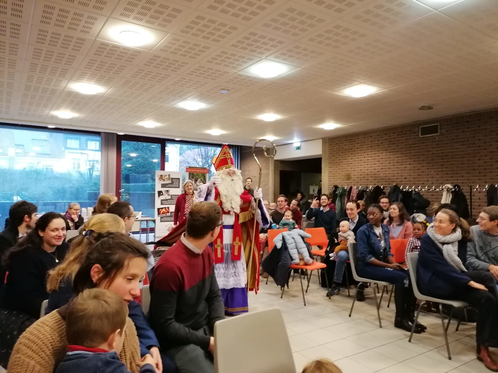 La venue de St Nicolas a fasciné les petits qui après se sont retrouvés dans un espace à eux pour des jeux, coloriages e bricolages.