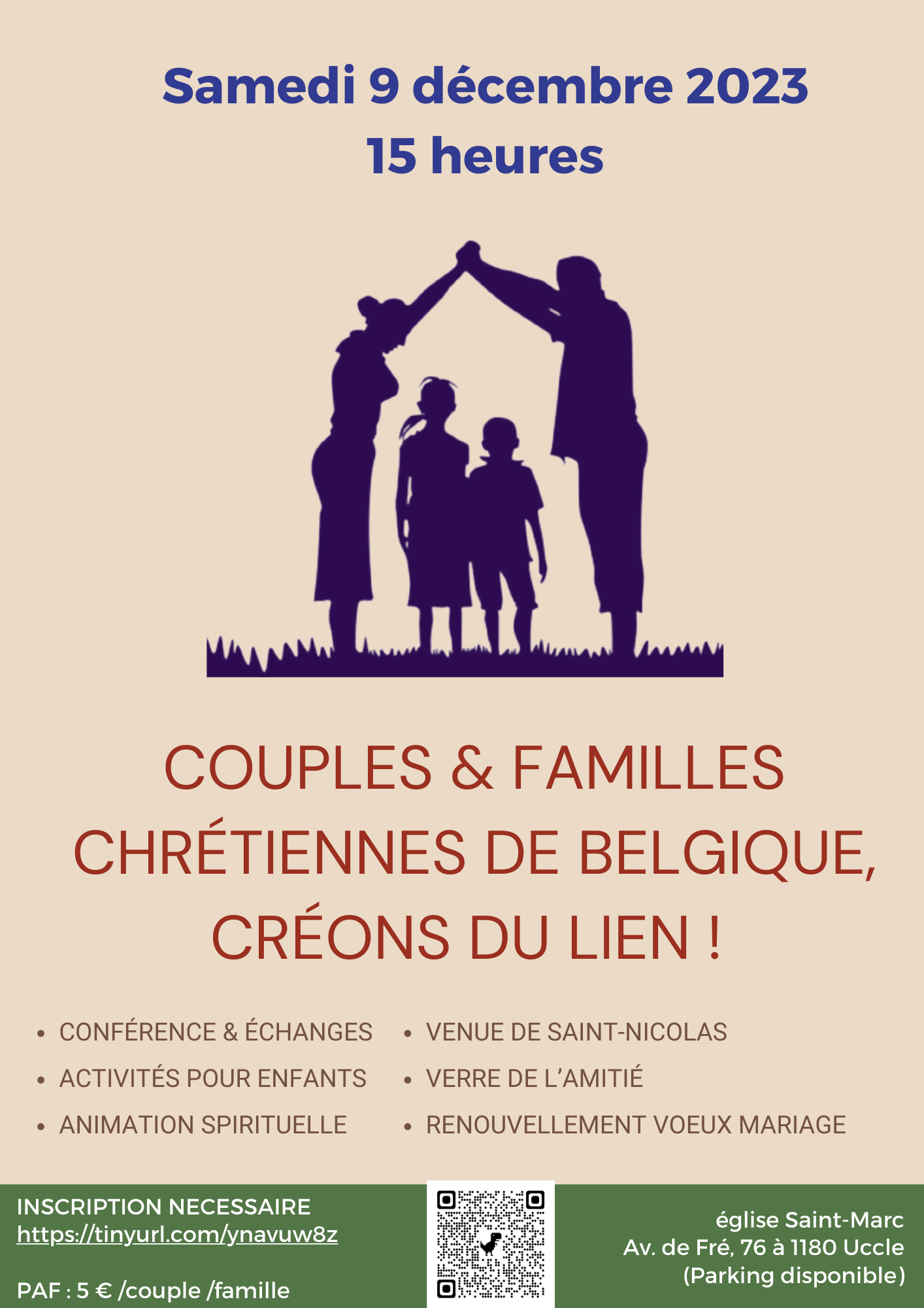 Cette première édition se déroulait à l’église St-Marc à Uccle le samedi 9 décembre à 15h. Elle a réuni une centaine de participants et une cinquantaine d’enfants : aux côtés des familles avec des jeunes enfants qui formaient un groupe important, des participants plus âgés avaient répondu présents prouvant. L’élément d’intergénérationnel était un facteur clé de succès.