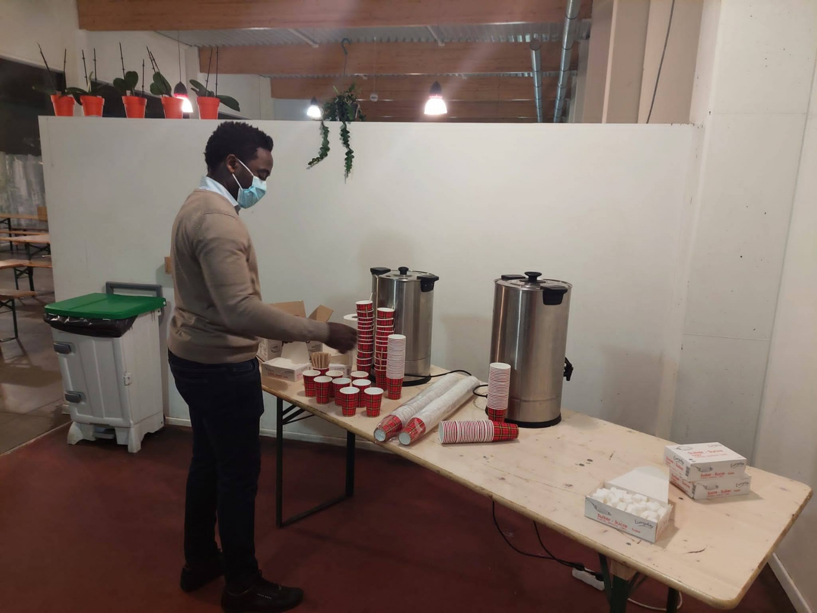 La communauté africaine anglophone s’est alors concertée avec la Croix-Rouge qui possède un centre de jour Bruss’Help au 94 avenue du Port. Ouvert 365 jours par an, le centre est déjà connu de cette population ultra-précarisée qui outre les repas, y reçoit la possibilité de se doucher, d’accéder à des toilettes et de s’asseoir pour y prendre un repas au chaud dans le calme.