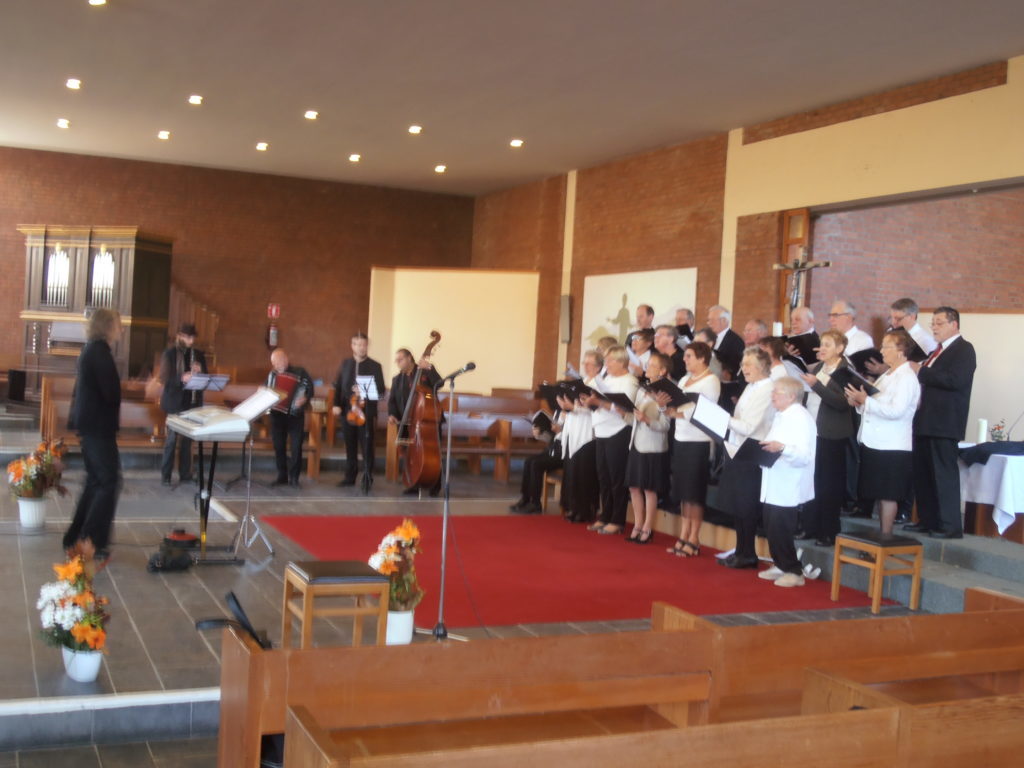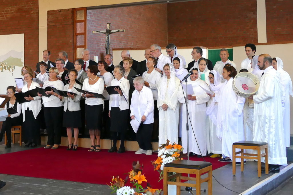 Dimanche 15 octobre deux chorales et un orchestre présentaient un très beau concert interreligieux à l’église Notre Dame du Perpétuel Secours à Watermael-Boitsfort. La chorale paroissiale Ste Cecilia d’Alsemberg, le groupe musulman soufi AISA de Bruxelles et les musiciens juifs KRUPNIK puisaient des mélodies de leurs traditions spirituelles respectives. A certains moment l’interaction musicale montrait clairement le lien entre les trois religions, soulignée par un chant final commun pour la paix. L’après-midi était proposé par une série d’associations catholiques, protestantes, juives et musulmanes, néerlandophones et francophones, coordonné par le Pôle Expertise Dialogue Interreligieux de l’Eglise de Bruxelles. Chaque année un autre lieu de culte se présente comme ’hôte’, toutes les propositions pour l’édition 2018 sont les bienvenues.