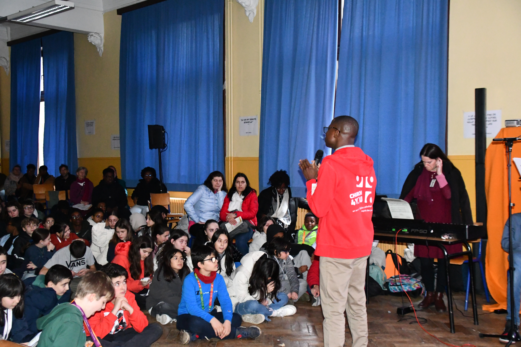 Le but de cet événement ? Rassembler les petits groupes locaux et permettre aux adolescents, non seulement de rencontrer d’autres croyants de leurs âges, mais également de faire l’expérience d’une Eglise jeune et joyeuse. C’est d’ailleurs un Jésus métamorphosé en personnage de bande dessinée et roulant à trottinette qui trônait sur l’affiche de l’événement, avec cette interpellation : « Toi aussi réponds à l’appel de Jésus dans ta vie ! ». C’était le thème de la journée : l’appel personnel de Jésus pour chacun d’entre nous, un appel à la vie, à la joie et au don de soi.