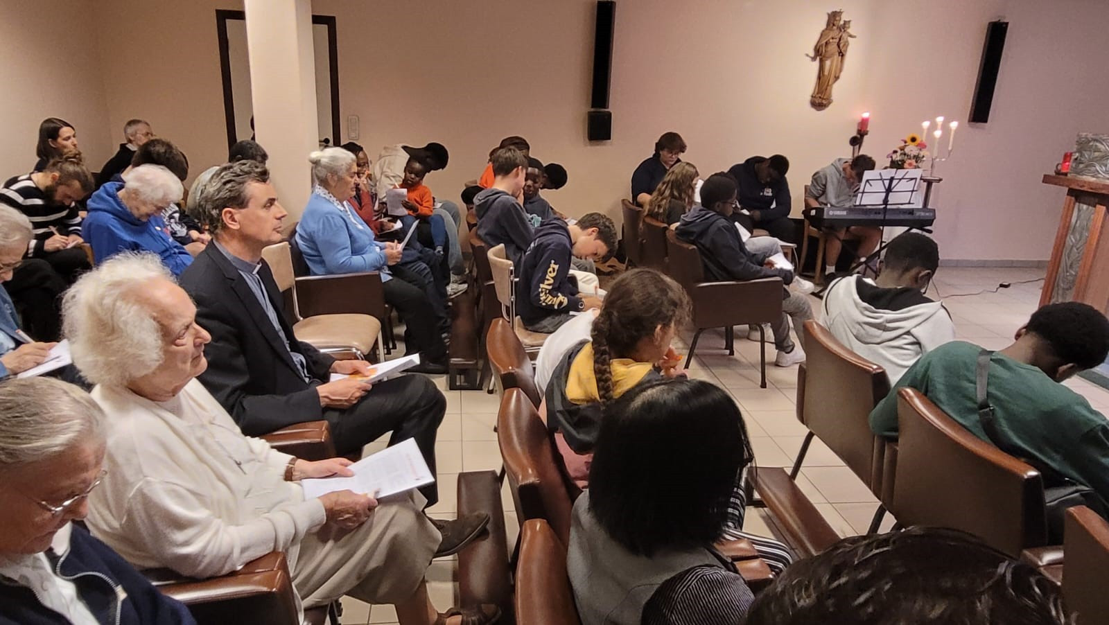 Pendant ce temps, les adultes, incluant des laïcs et deux communautés de sœurs salésiennes, se sont réunis pour un moment de partage autour de la figure de Marie.