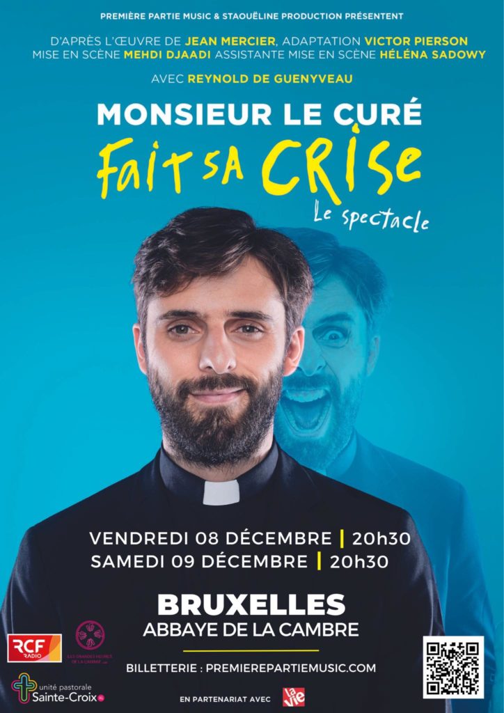 “Monsieur le Curé fait sa crise, le spectacle” est une adaptation du roman best-seller éponyme écrit par Jean Mercier, publié en 2016. Cette histoire interpelle avec humour les personnes investies de près ou de loin dans la vie d’une paroisse.