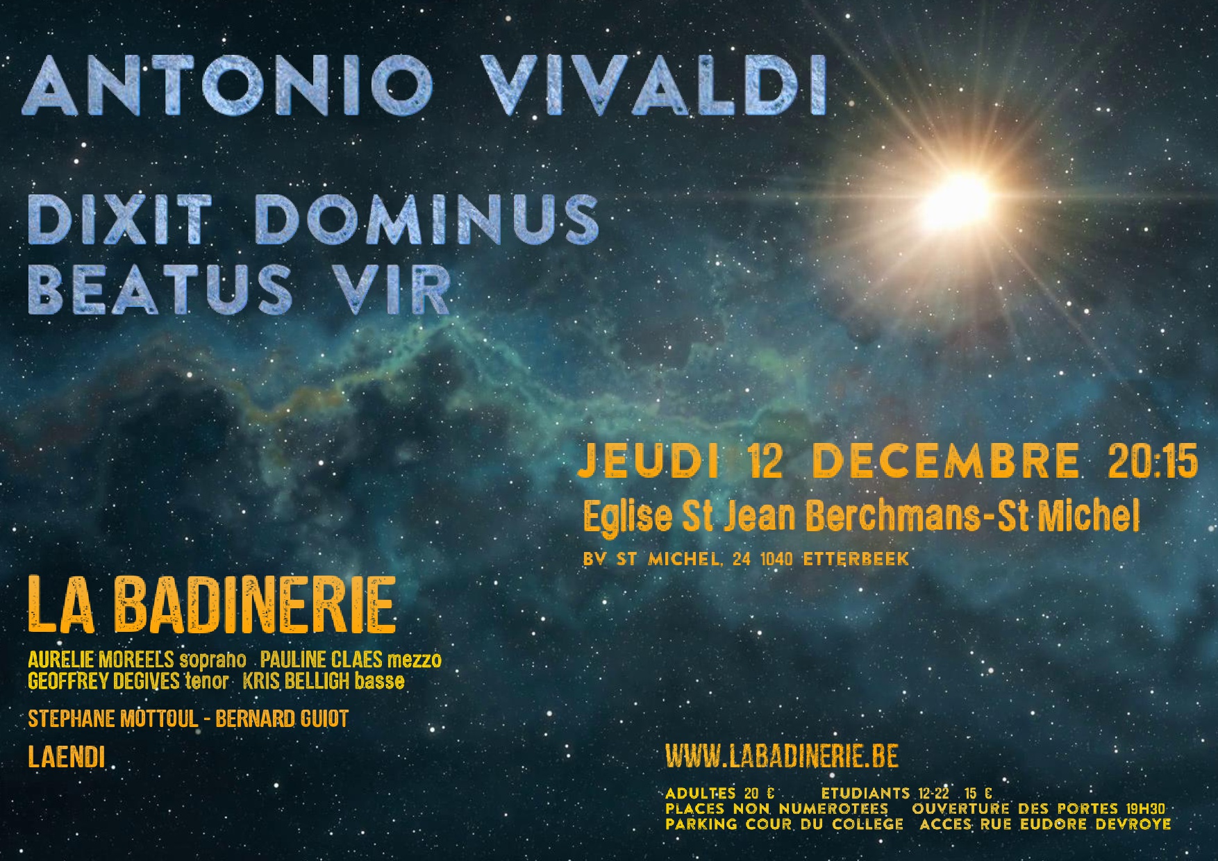 La Badinerie, chœur mixte de Louvain-la-Neuve vous invite le 12 décembre à 20h en l’église Saint-Jean-Berchmans pour un concert inspiré d’Antonio Vivaldi.