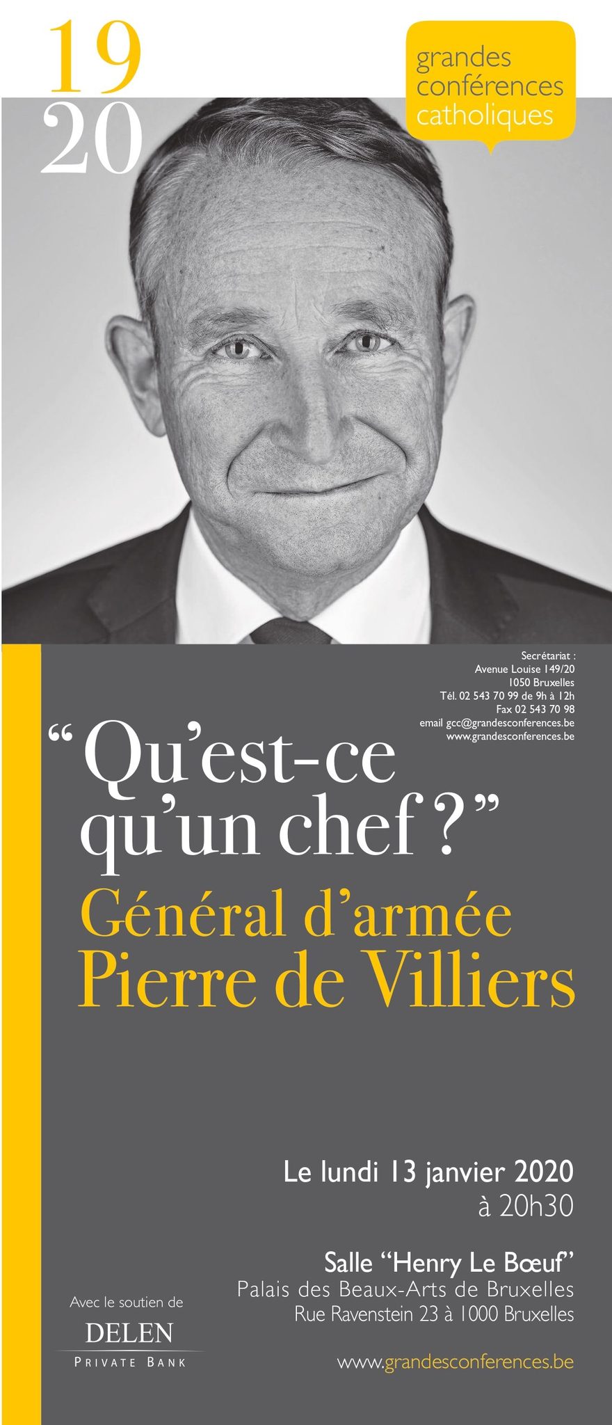 Le général d’armée Pierre de Villiers vous invite à sa conférence « Qu’est-ce qu’un chef ? » qui aura lieu le 13 janvier 2020 au Palais des Beaux Arts.