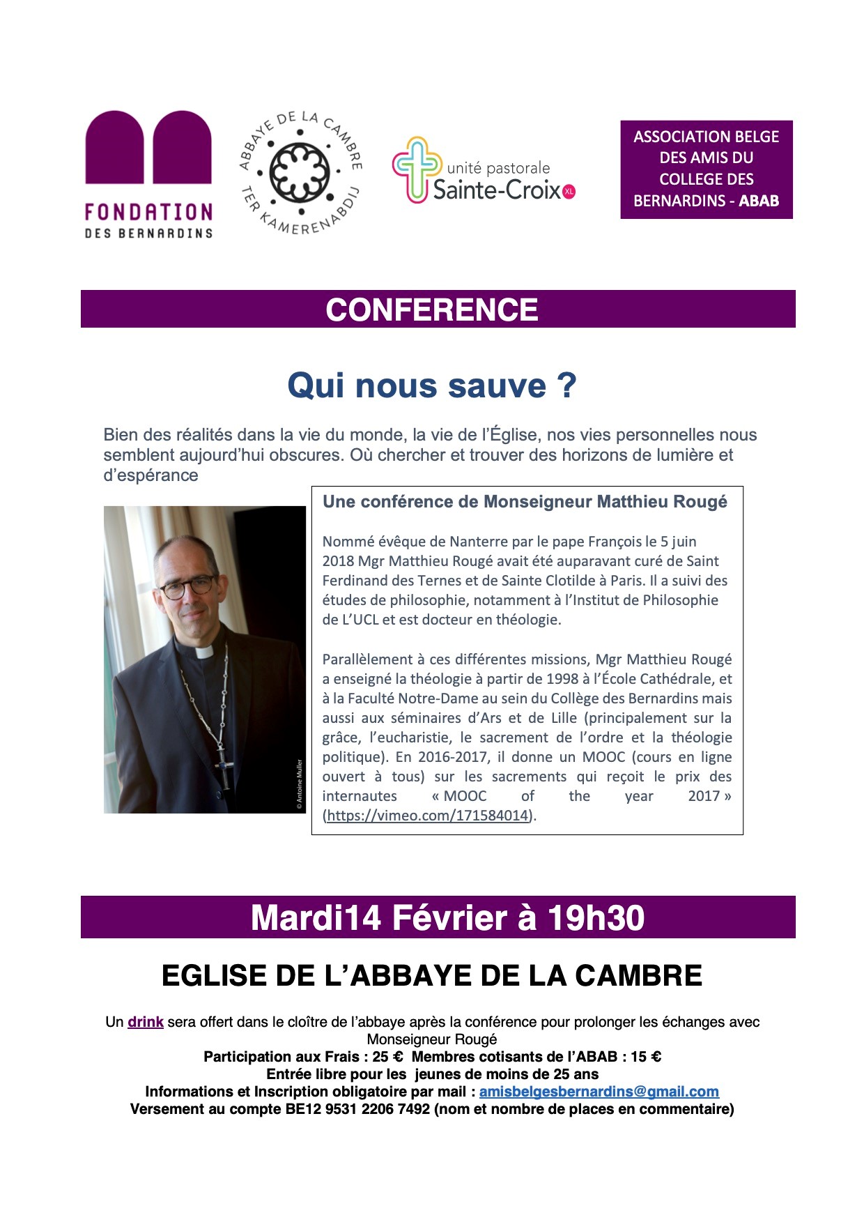 Mgr Rougé sur « Qui nous sauve ? » à la Cambre le 14 Février