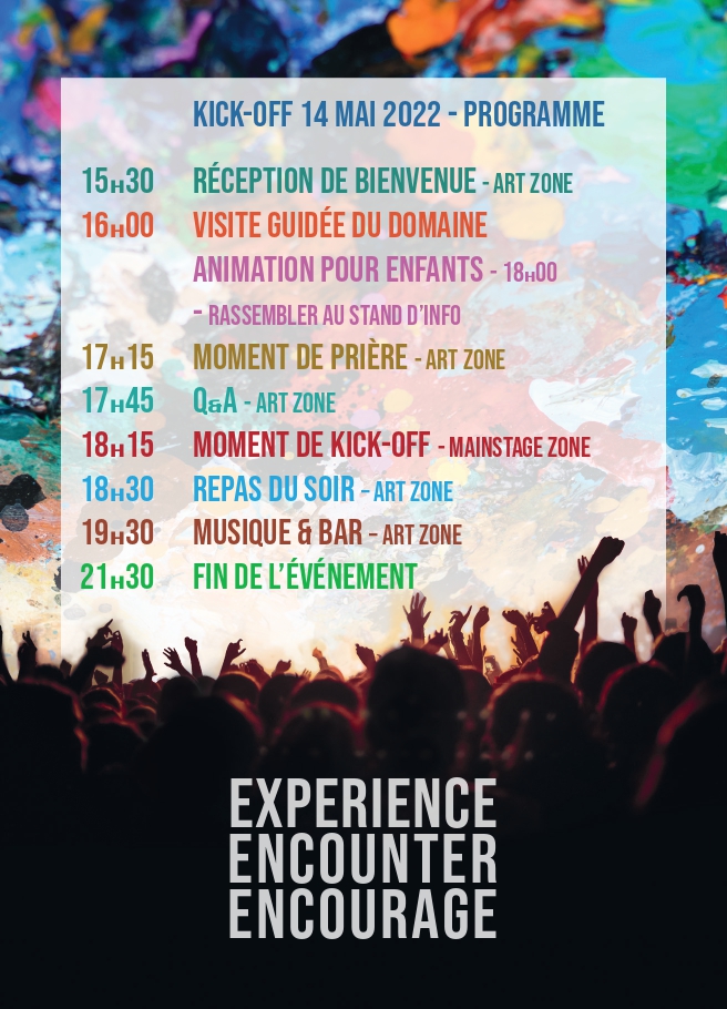 La journée Kick-off du 14 mai se déroulera entre prière et chant et se terminera par un repas en soirée pour répondre aux éventuelles questions sur le projet. S’inscrire.