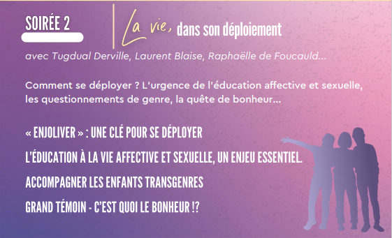 Vidéos, témoignages, échanges autour d’invités locaux ponctueront ces soirées. Experts et témoins croiseront leurs regards sur les enjeux qui traversent notre temps : bien vieillir, désir d’enfant, éducation affective et sexuelle, questionnement de genre…