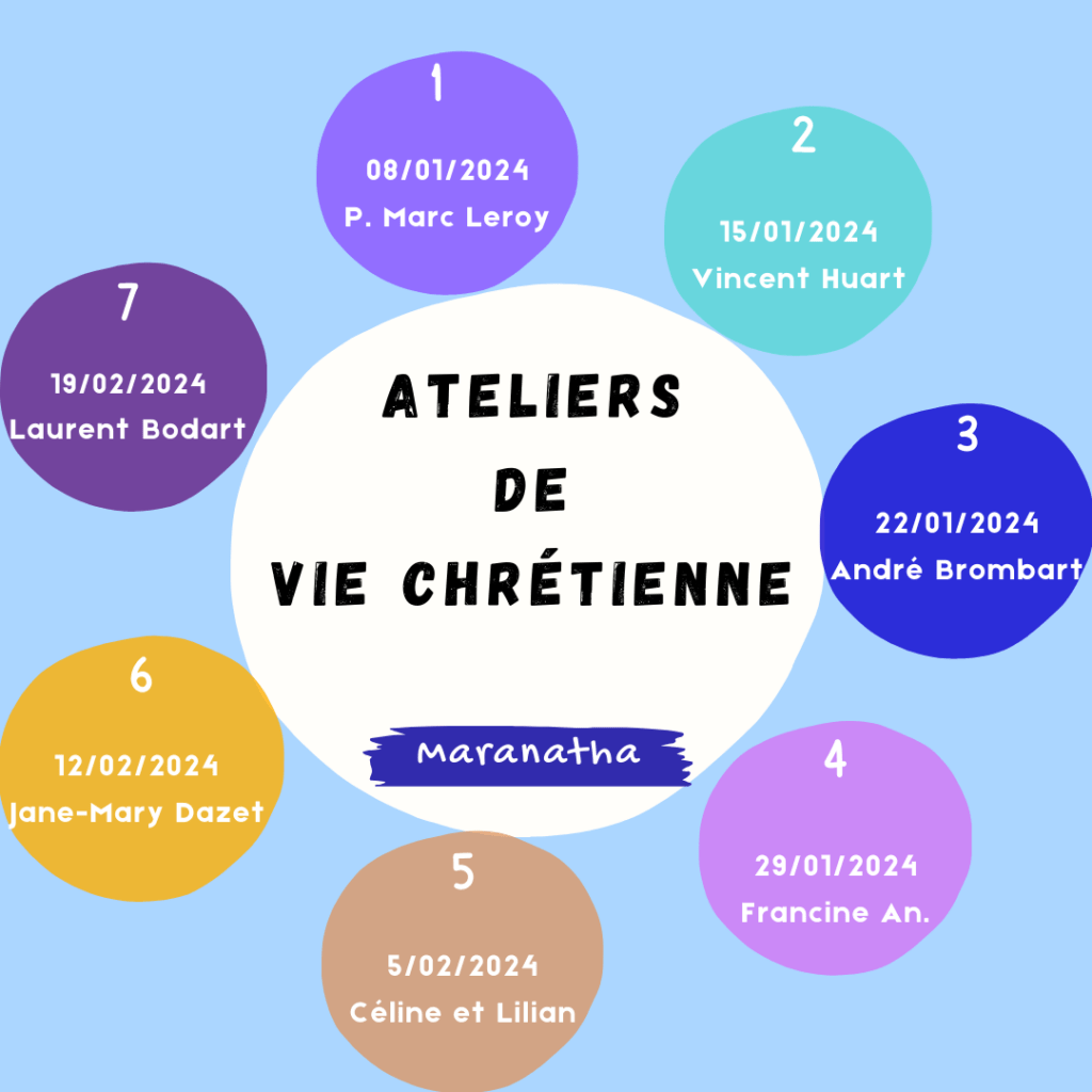 La communauté Maranatha organise des ateliers de vie chrétienne du 08 janvier au 19 février 2024. Vous êtes tous invités à y participez !