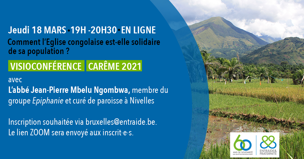 - 11/03: « Pourquoi défendre l’agriculture paysanne familiale au Congo ? ». Rencontre avec 2 partenaires E&F du Congo (Richard Alimasi, coordinateur de Juste Cause Congo et Clément Bisimwa, coordinateur pays pour Entraide et Fraternité à Bukavu – Congo) et Philippine Cartier, chargée des partenariats Afrique Centrale chez E&F.