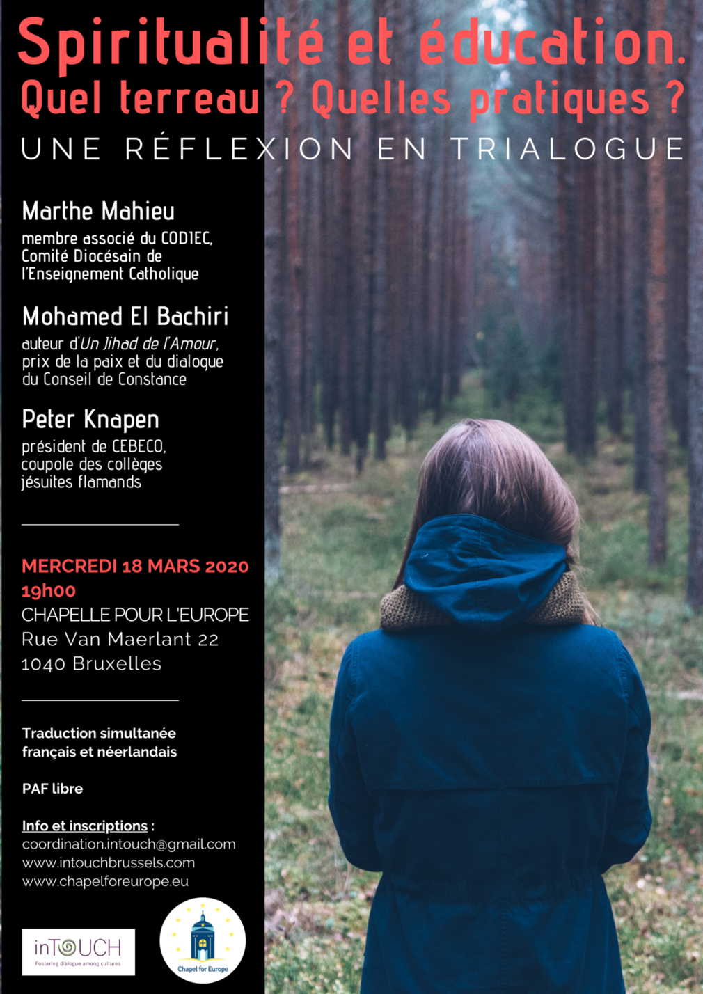 Marthe Mahieu, membre associé du CODIEC, Comité Diocésain de l’Enseignement Catholique, Mohamed El Bachiri, auteur d’Un Jihad de l’Amour, prix de la paix et du dialogue du Conseil de Constance et Peter Knapen, président de CEBECO, coupole des collèges jésuites flamands nous aideront à réfléchir ensemble nous aideront à réfléchir ensemble le 18 mars, dans une approche qui explore les terreaux – mondes des profs et des élèves – et des pratiques.