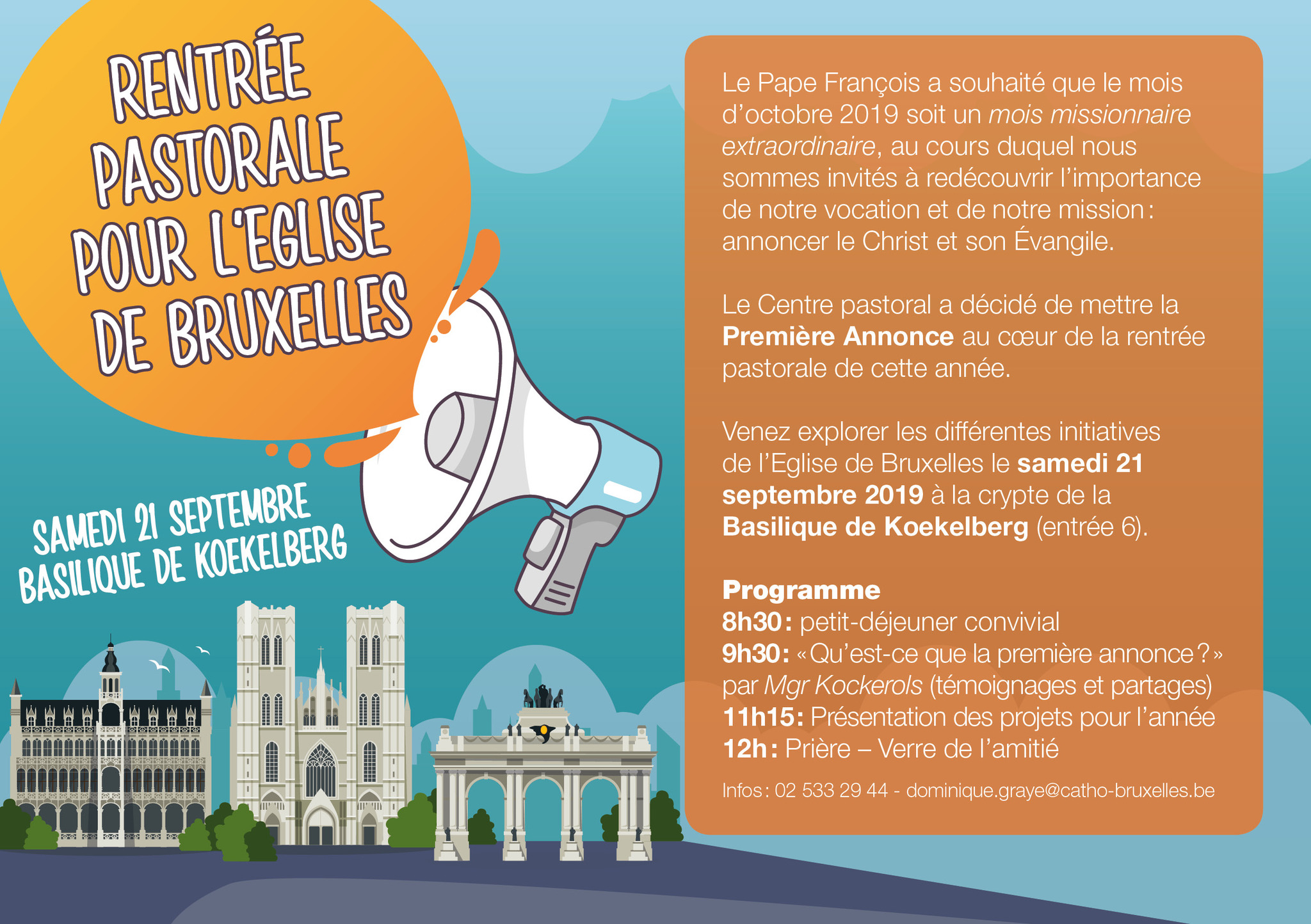 Le samedi 21 septembre en matinée, se déroulera la rentrée pastorale francophone à la basilique de Koekelberg. Elle réunira les membres du clergé de Bruxelles francophone.