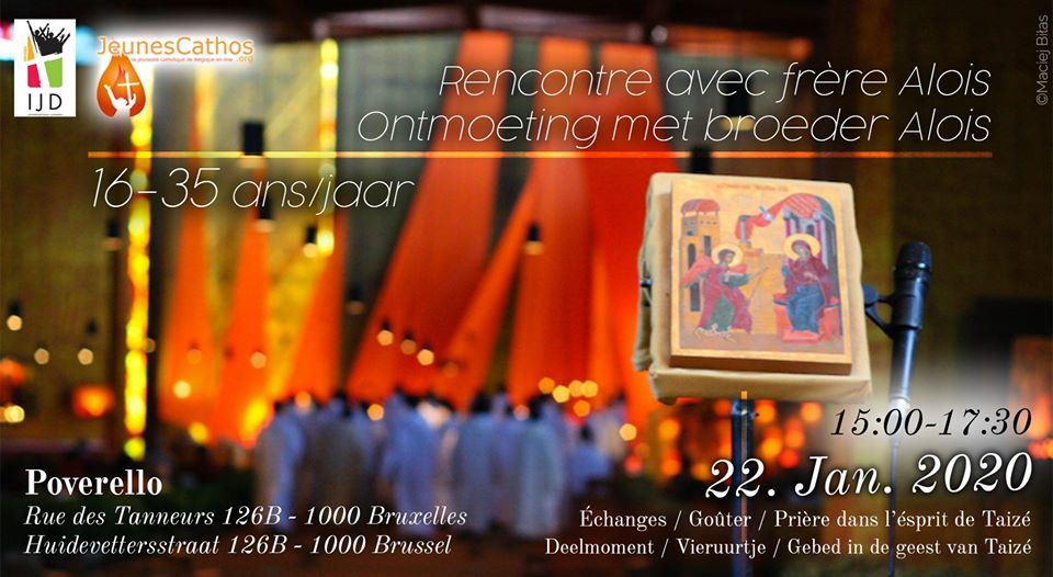 Le 22 janvier, tous les jeunes de 16 à 35 ans sont invités à rencontrer le frère Aloïs de Taizé au Poverello à Bruxelles.