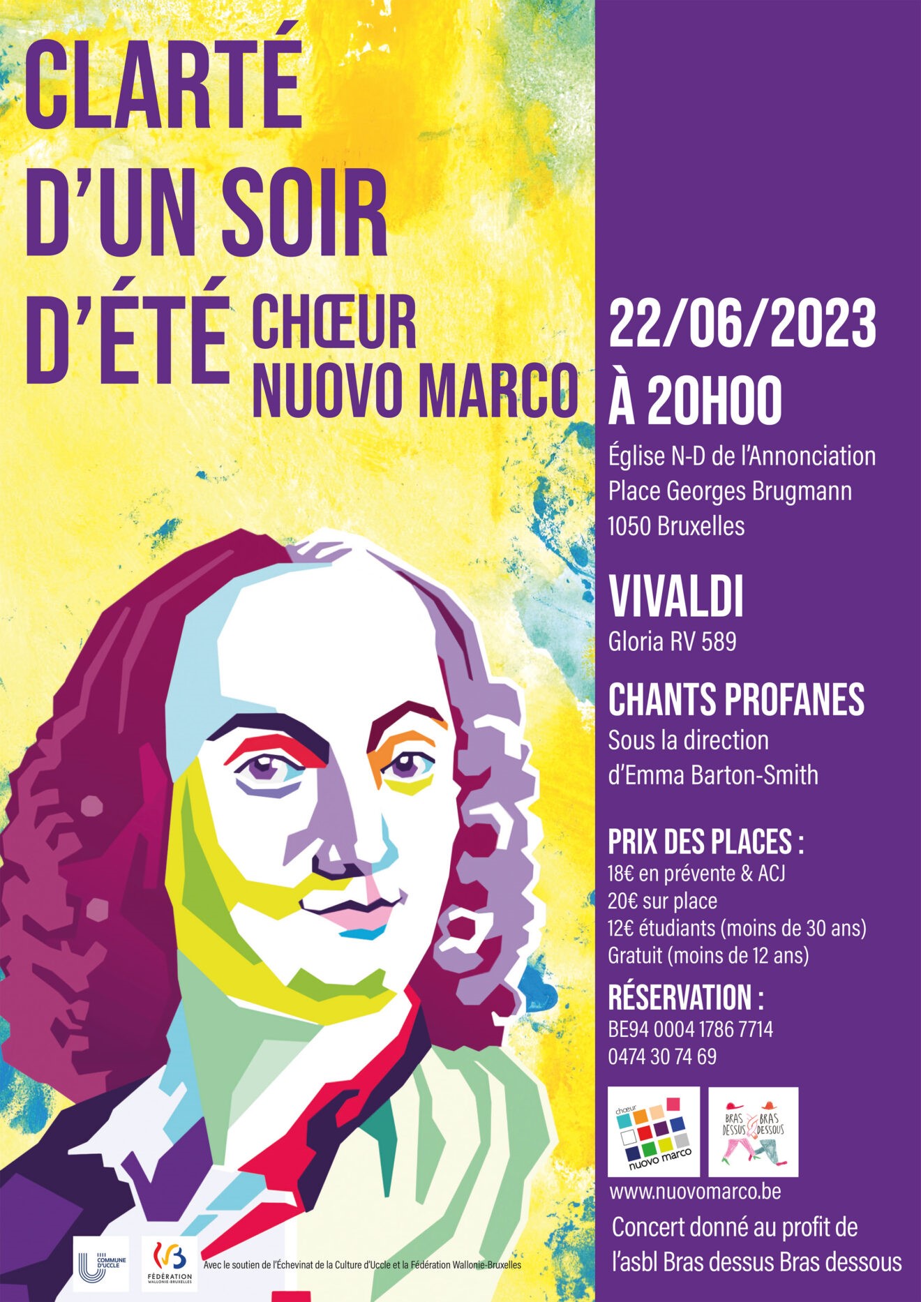 débutez votre été avec une soirée musicale  le jeudi 22 juin à 20h à Notre-Dame de l’Annonciation ! Le Chœur Nuovo Marco vous présente son concert intitulé « Clarté d’un soir d’été« , mettant en lumière les magnifiques compositions de Vivaldi ainsi que des chants profanes enchanteurs.