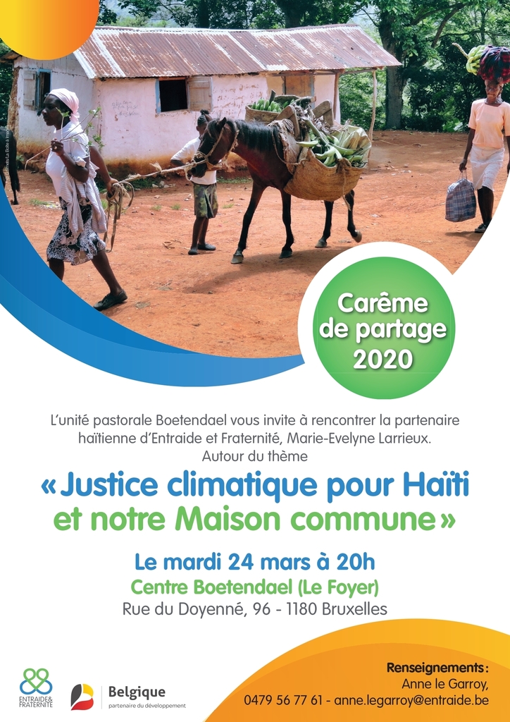 L’unité pastorale Boetendael vous invite à rencontrer la partenaire haïtienne d’Entraide et Fraternité, Marie-Evelyne Larrieux le mardi 24 mars