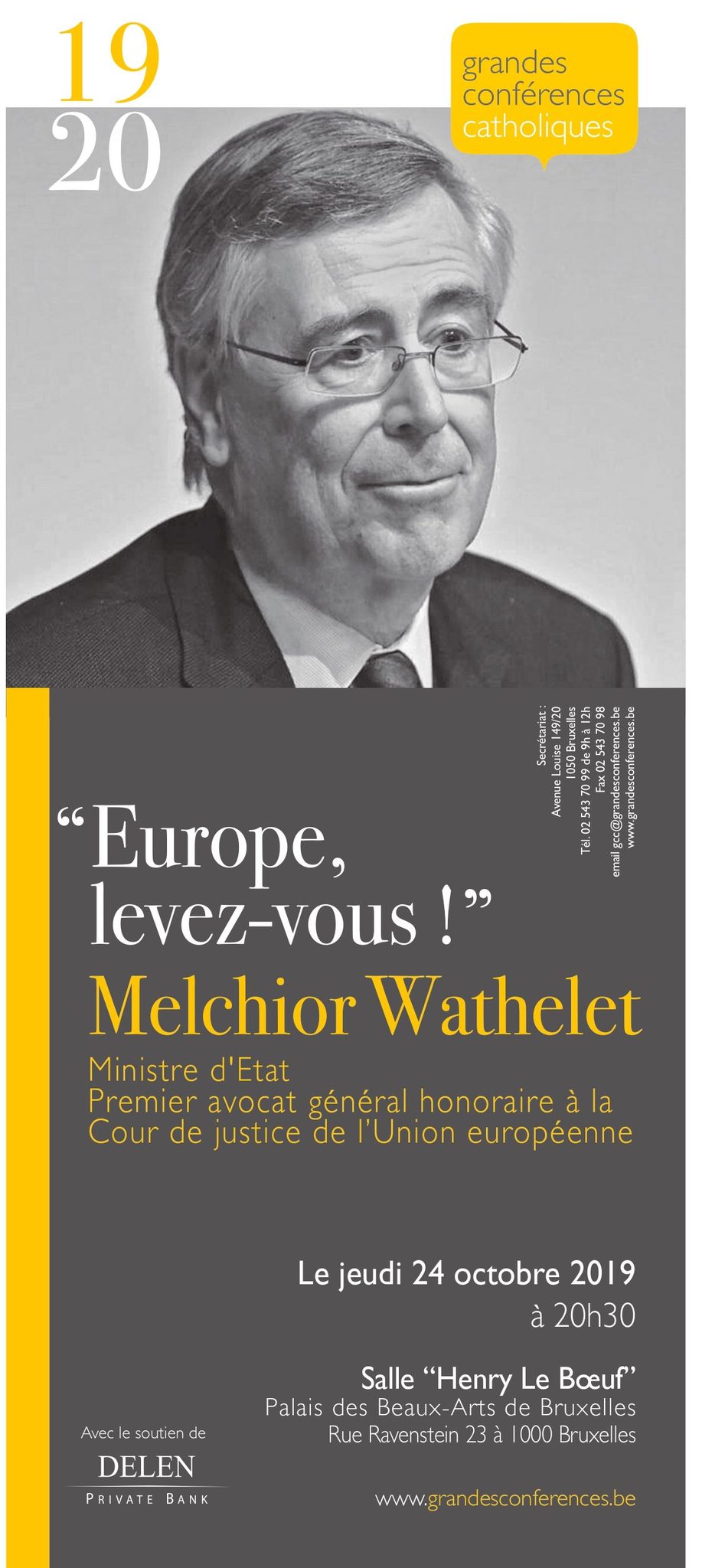« Europe, levez-vous ! », tel est le titre de la conférence que Melchior Watelet donnera le 24 octobre dans le cadre des grandes conférences catholiques au palais des Beaux-Arts.