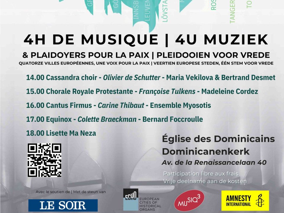 La communauté dominicaine de Bruxelles faisant partie du réseaux des orgues historiques d’Europe (ECHO), a le privilège d’accueillir le « Concert pour la Paix » qui se déroulera simultanément dans 14 villes Européennes.