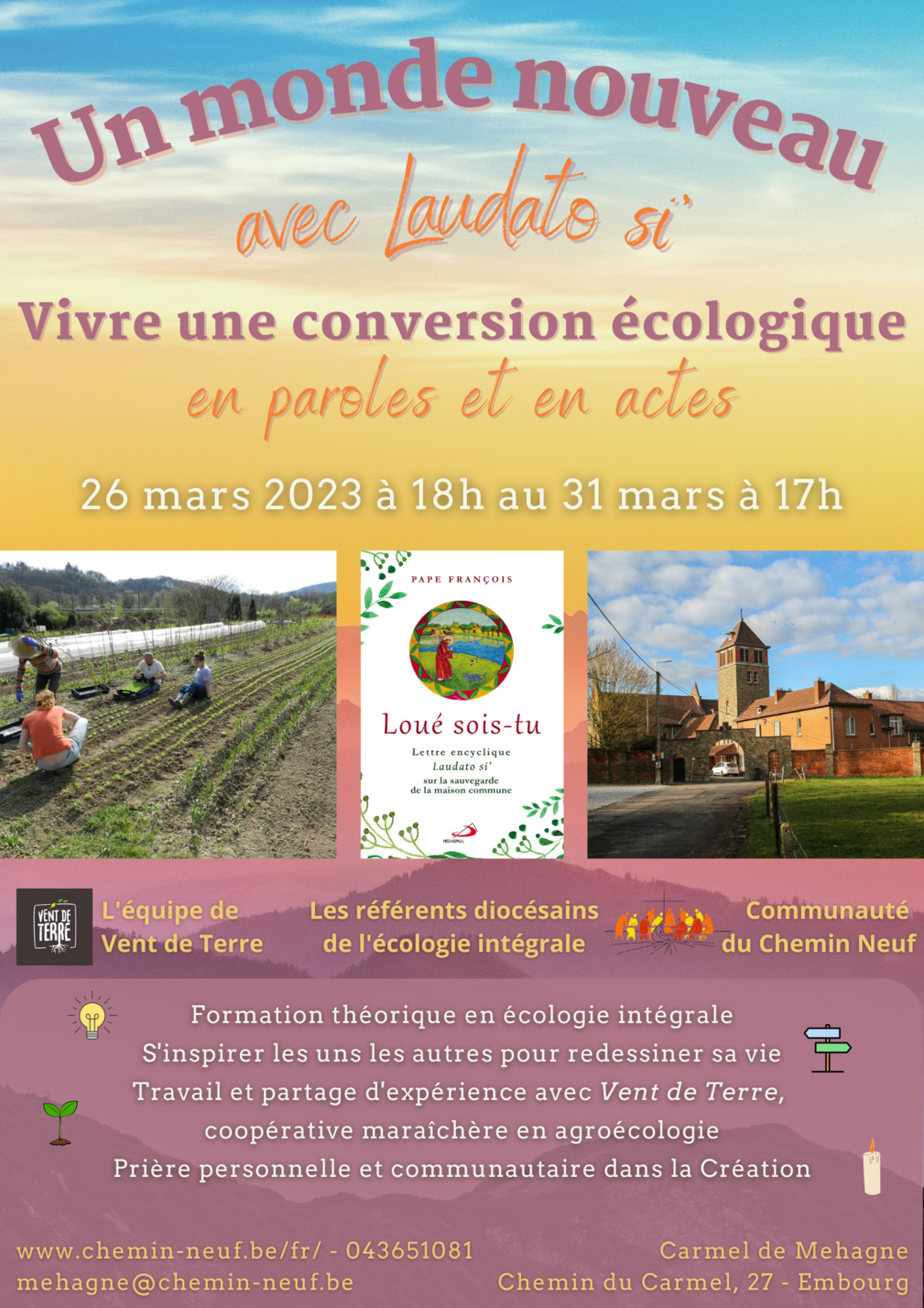 - Inscription et contact : https://www.chemin-neuf.be/fr/evenement/session-laudato-si/ – 043651081 mehagne@chemin-neuf.be