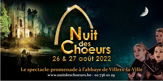 La Nuit des Chœurs est LE spectacle-promenade de l’été. Ces 26 et 27 août 2022, venez à la rencontre de formations vocales de renommée internationale. Six ensembles vocaux sont disséminés dans les endroits les plus remarquables du domaine historique de l’abbaye de Villers-la-Ville pour offrir, chaque soir, une suite de concerts en alternance.