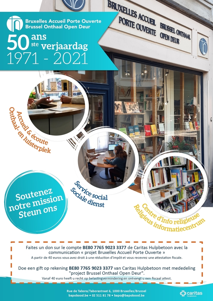 L’accueil est ouvert tous les jours de 10.00 à 17.45 heures, sauf le dimanche. Il y a toujours une personne disponible, au rez-de-chaussée, pour accueillir chacun de ceux qui se présentent.