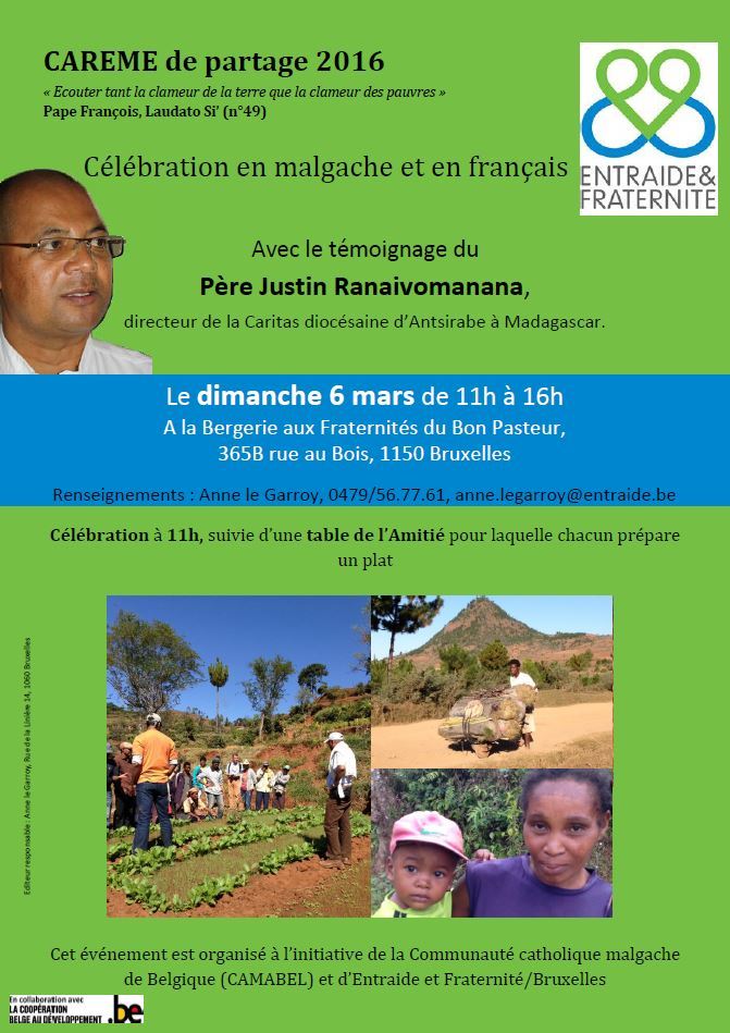 Le dimanche 6 mars, avec célébration en malgache, de 11h à 16h A la Bergerie aux Fraternités du Bon Pasteur, 365B rue au Bois, 1150 Bruxelles