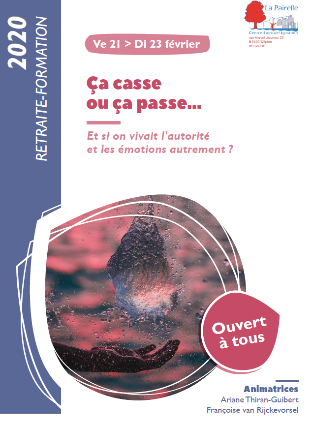 L’ASBL Sortir de la violence vous propose une retraite-formation du vendredi 21 au dimanche 23 février 2020 sur le thème : « Ça casse ou ça passe… Et si on vivait l’autorité et les émotions autrement ? »
