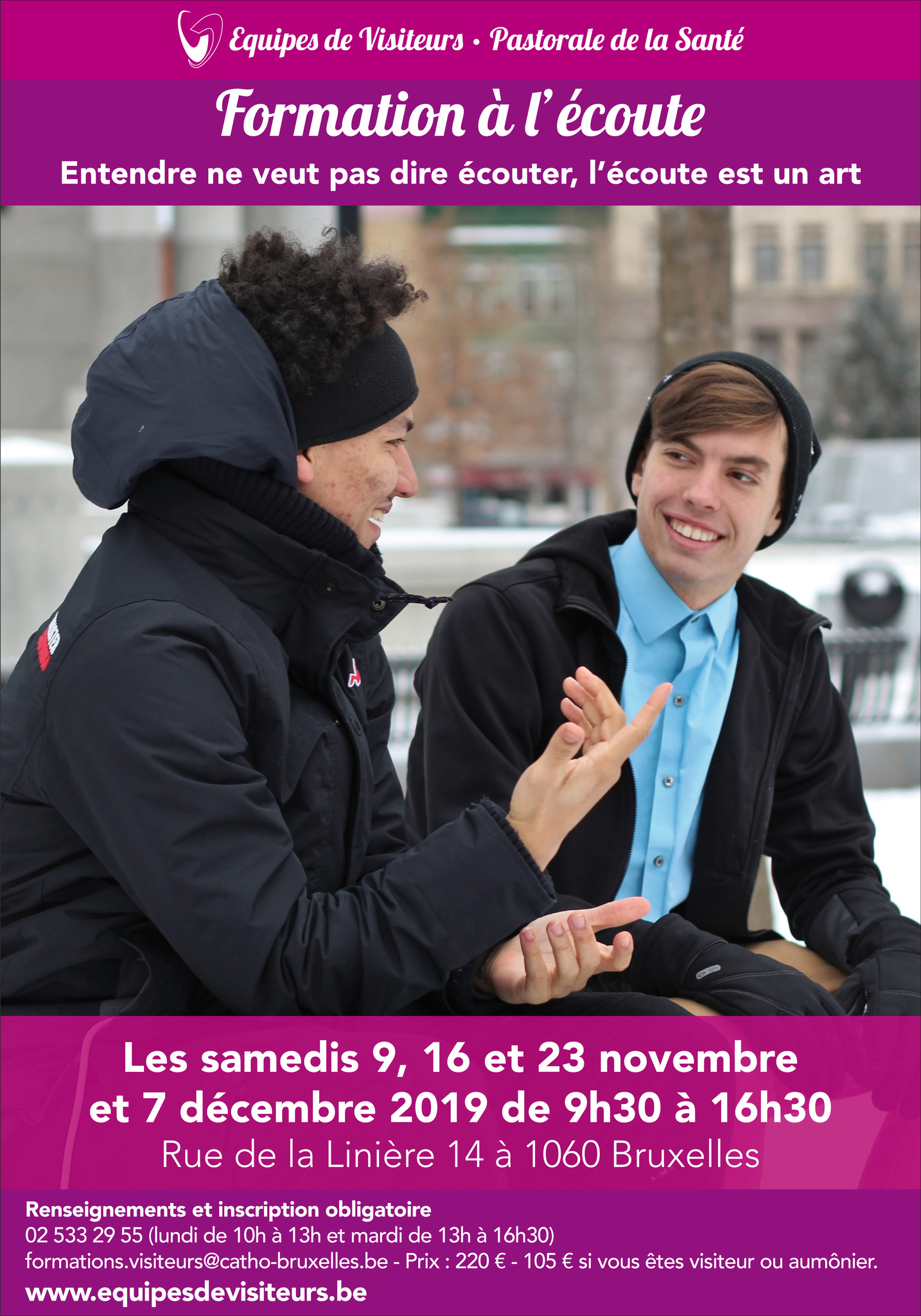 Inscription pour les 4 jours de formation via formations.visiteurs@catho-bruxelles.be  – tel : 02 533 29 55