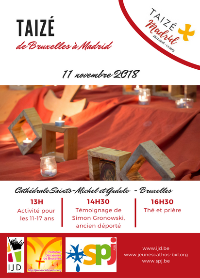 Notre prière de Taizé du 11 novembre aura lieu à la Cathédrale Saints-Michel et Gudule, en collaboration avec nos collègues néerlandophones d’IJD Brussel mais aussi ceux du Service Protestant de la Jeunesse.