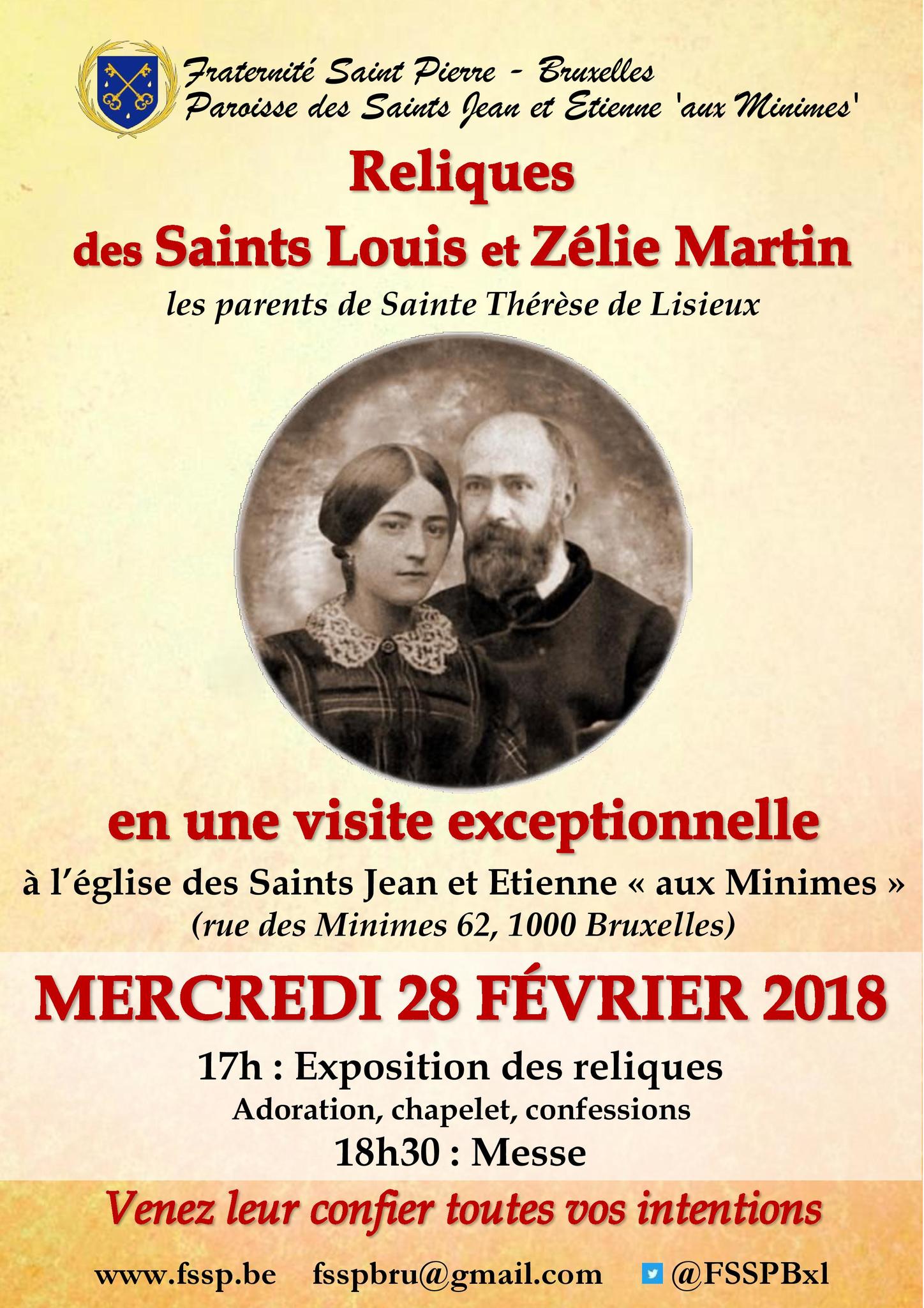 ! Malheureusement, les intempéries qui sévissent en France empêcheront la venue des Reliques des Saints Louis et Zélie Martin, ce soir à l’église des Saints Jean et Etienne aux Minimes !