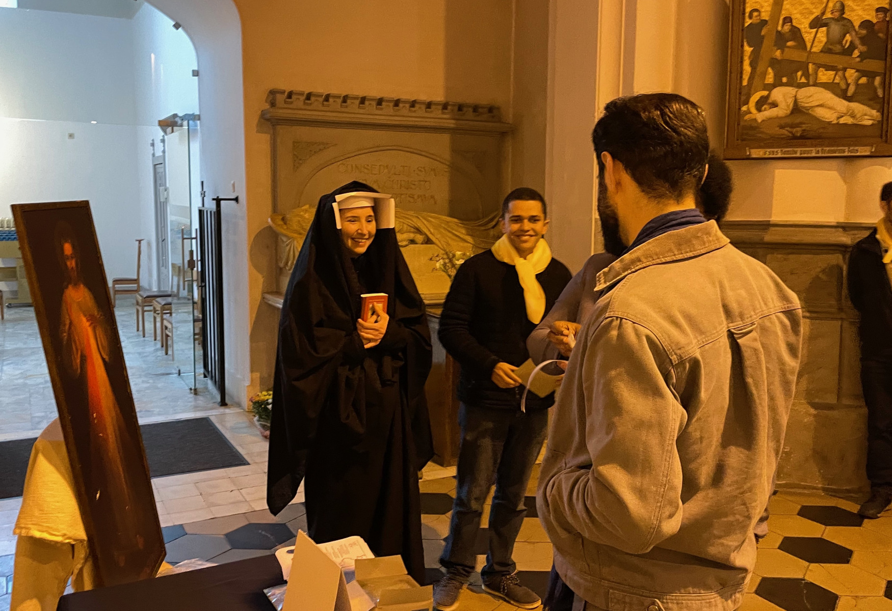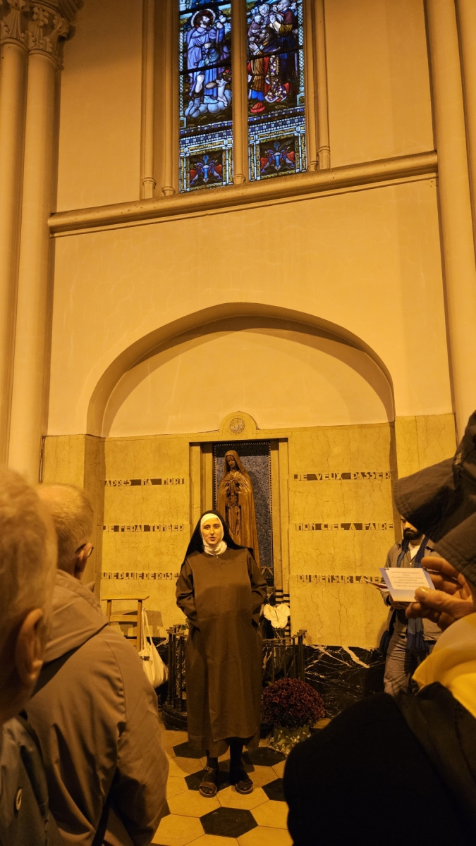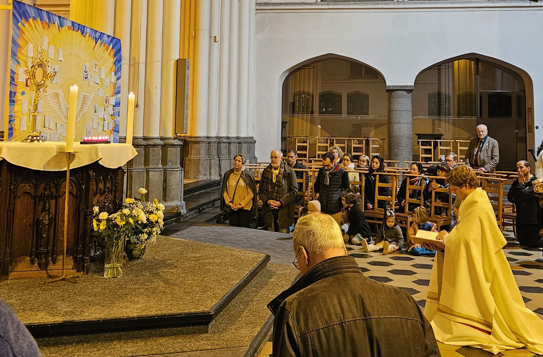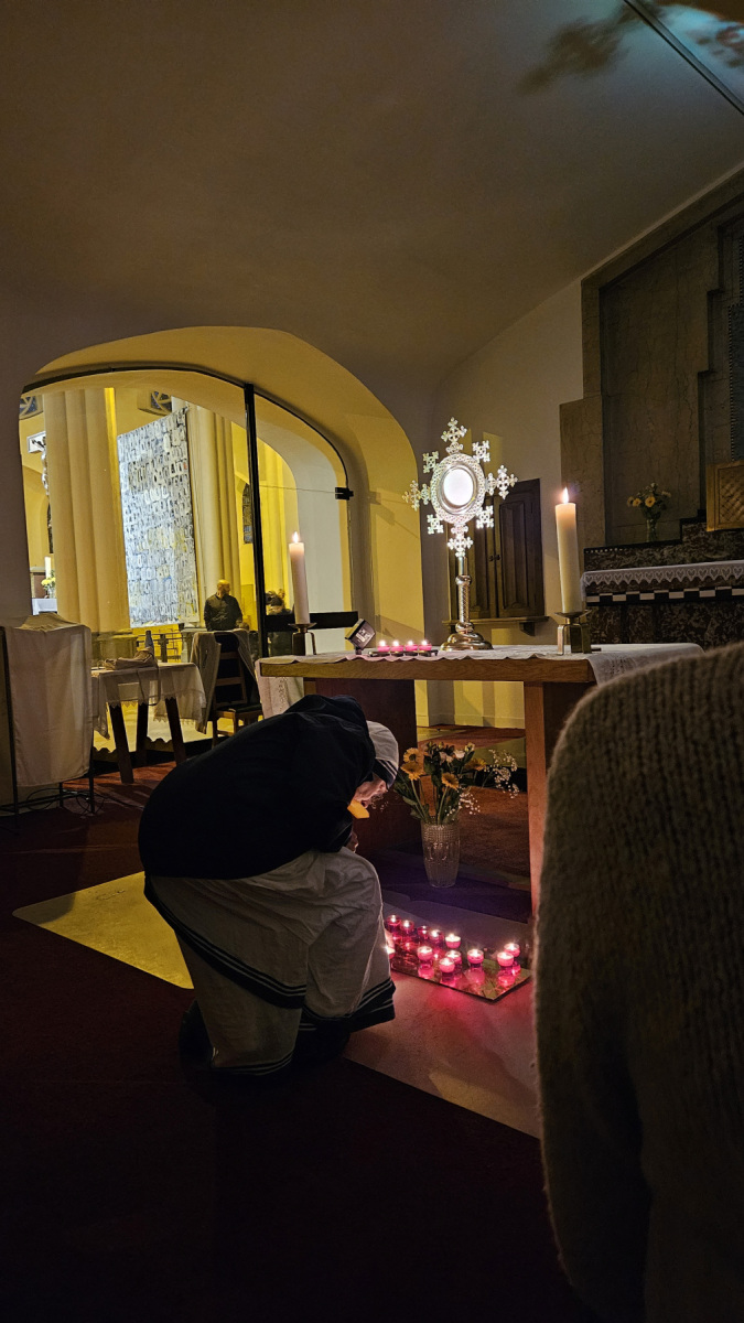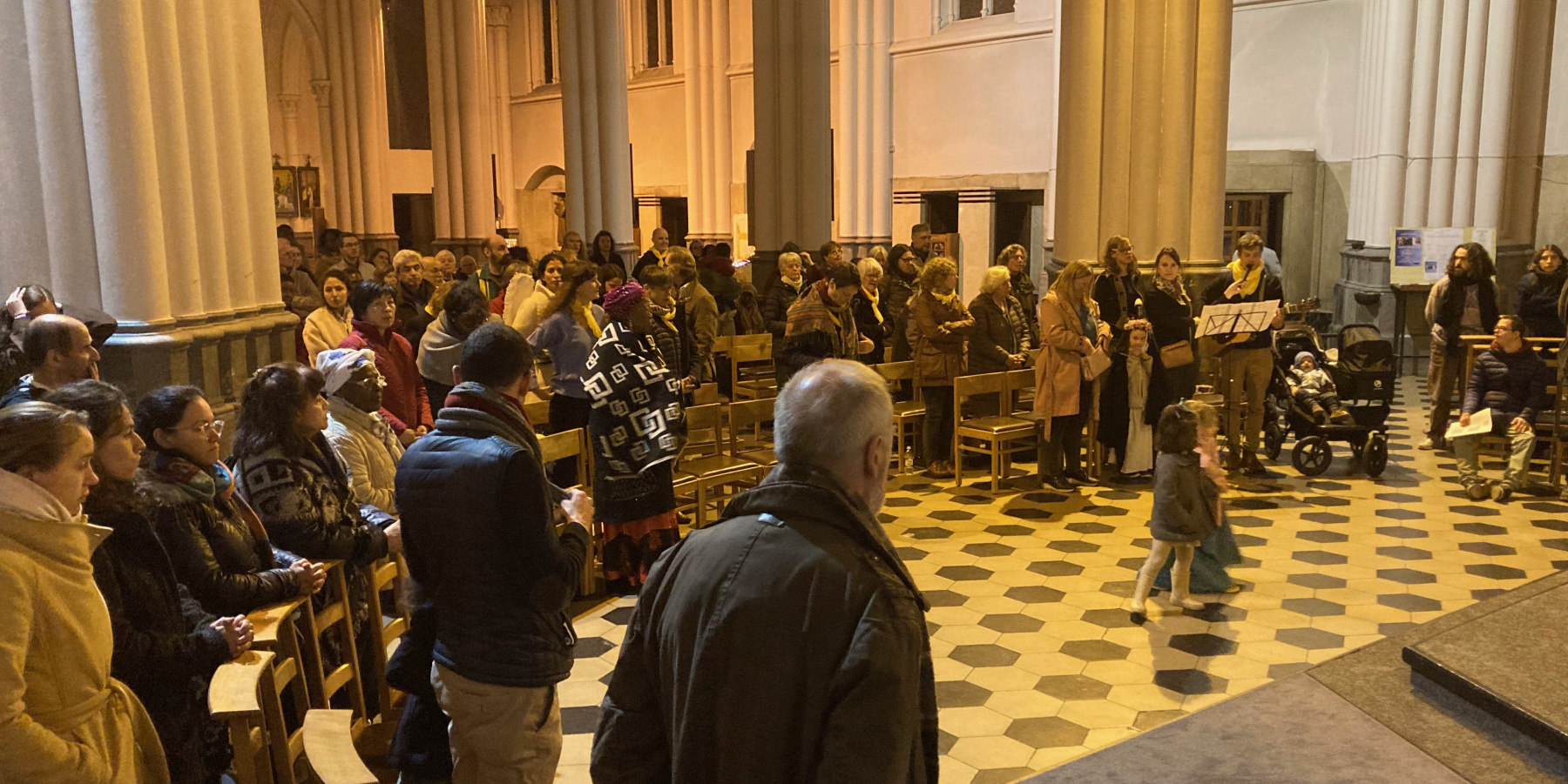 À la fin du parcours, les visiteurs étaient invités à un temps d’adoration, déposant une bougie au pied du Saint-Sacrement. Nous avons ainsi vécu 2h30 d’adoration animée notamment par des jeunes du kot Even. L’après-midi s’est achevée par une litanie joyeuse et une dernière adoration commune.