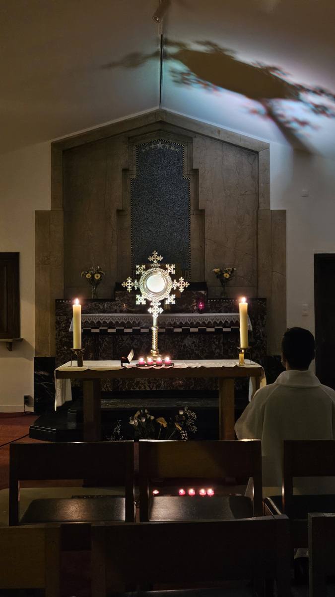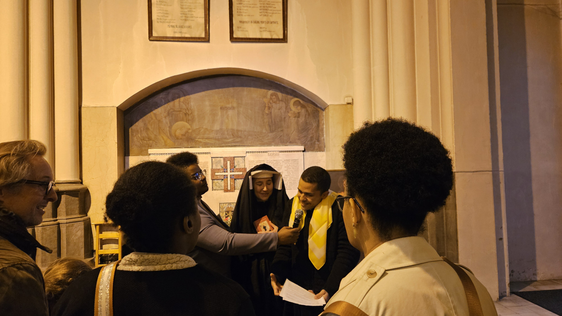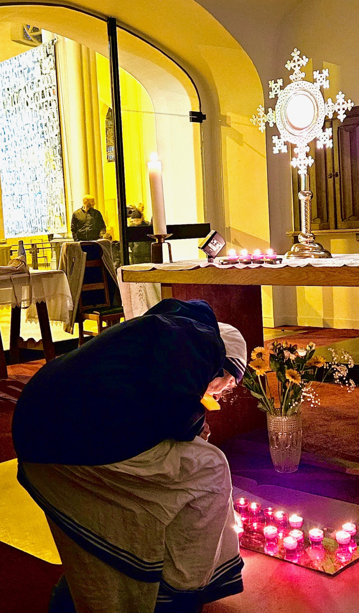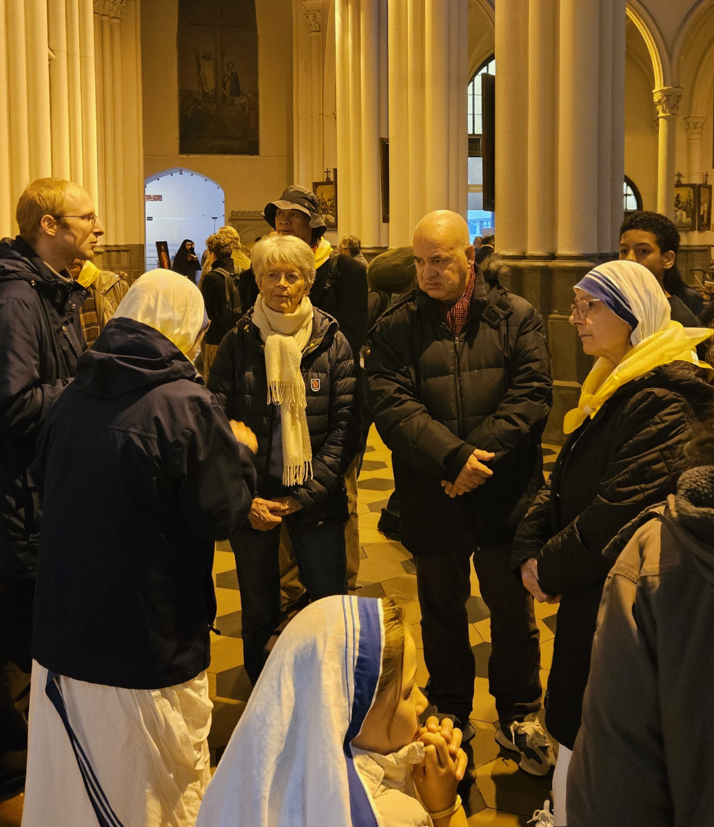 À la fin du parcours, les visiteurs étaient invités à un temps d’adoration, déposant une bougie au pied du Saint-Sacrement. Nous avons ainsi vécu 2h30 d’adoration animée notamment par des jeunes du kot Even. L’après-midi s’est achevée par une litanie joyeuse et une dernière adoration commune.