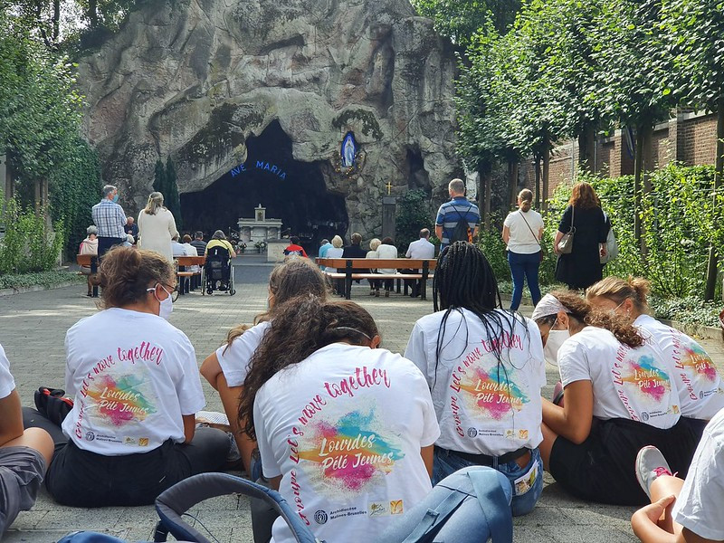 Notre groupe de jeunes 12 – 30 ans a été comme vous tous très triste lorsque le pèlerinage à Lourdes a été annulé. Le Covid 19, au-delà des tracas et de la souffrance qu’il apporte à notre monde, nous oblige à faire preuve d’humilité, de créativité et de flexibilité. Notre groupe, habitué déjà depuis de nombreuses années à accompagner et aider plus spécifiquement les personnes moins valides du pèlerinage Malines – Bruxelles, a tout de suite pensé à des solutions alternatives pour tout de même pouvoir témoigner de notre soutien et de notre solidarité auprès de ces personnes. L’idée a germé d’un camp résidentiel en Belgique avec le même mélange d’activités qu’à Lourdes : contacts auprès des personnes moins valides et activités de détente et de spiritualité spécifiques à notre groupe. Nous aurions voulu visiter le plus possible de personnes moins valides mais la recrudescence en juillet de ce fichu virus nous a obligés d’envisager plutôt des contacts téléphoniques et virtuels.