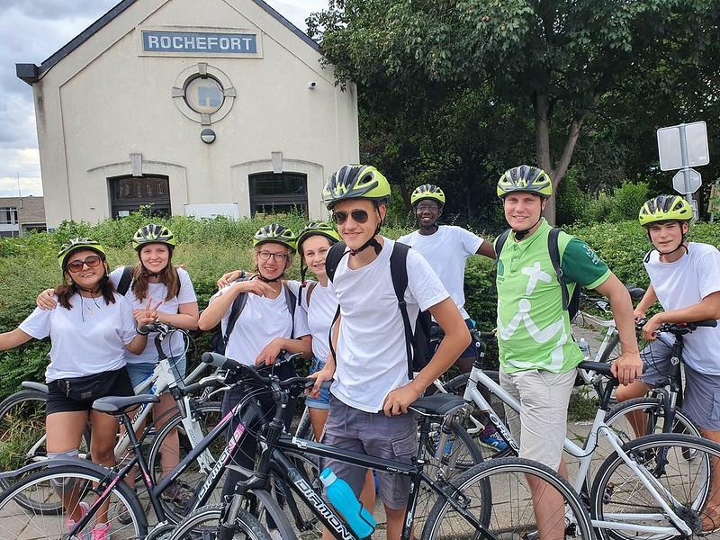 Le vendredi matin fut consacré à une visite de la Basilique de Koekelberg en compagnie du diacre local Pierre Merlin, figure bien connue de notre pèlerinage. Pierre connaît la Basilique comme sa poche et nous a relaté quelques anecdotes peu connues et nous a entrainés sur le très beau panorama à 52 mètres de hauteur d’où s’aperçoivent la cathédrale de Malines et même la tour du plan incliné de Ronquières ! Cela vaut le détour et c’est aussi accessible aux personnes à mobilité réduite. Nous nous sommes ensuite retrouvés le samedi matin à l’église Notre-Dame de Lourdes à Jette pour assister en chantant à la messe de notre pèlerinage retransmise en direct sur le site internet. Après un passage par la grotte située à proximité, nous partions en voitures vers Houyet pour une promenade à vélos sur le superbe Ravel aménagé entre Houyet et Rochefort. Nous voulions faire du kayak mais là ce n’est pas le virus mais bien la sécheresse qui est venue jouer les trouble-fête… Hé oui, la flexibilité jusqu’au bout ! Cap ensuite sur Beauraing pour y vivre une belle veillée aux flambeaux et une eucharistie solennelle à l’occasion de la fête de Marie Reine du 22 août, particulièrement mise à l’honneur dans ce sanctuaire marial de notre beau pays. Après une nuit au bâtiment d’accueil et une visite du sanctuaire le dimanche matin, la dernière étape de notre camp nous a entraînés à pied à travers la campagne vers Lavaux-Ste-Anne où nous avons assisté avec quelques parents à l’office des vêpres de la communauté de Tibériade.