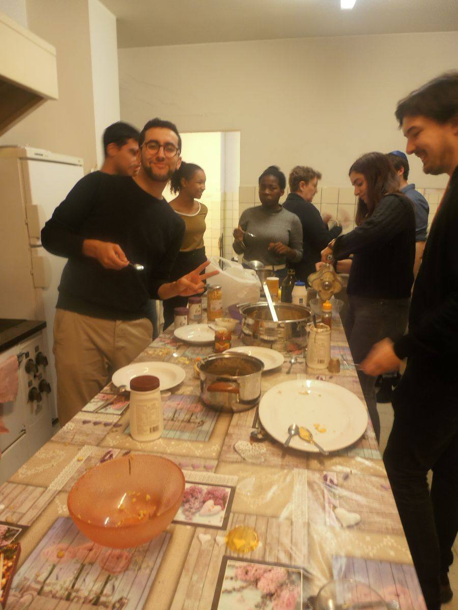 La journée a eu lieu à la synagogue d’Anderlecht et commençait par une courte visite du lieu de prière, présenté par Sacha Guttmann, président de l’Union des Etudiants Juifs de Belgique. Elle s’est terminée par une collation de pain agrémentée des quatre variétés d’houmous réalisées lors de l’atelier cuisine.